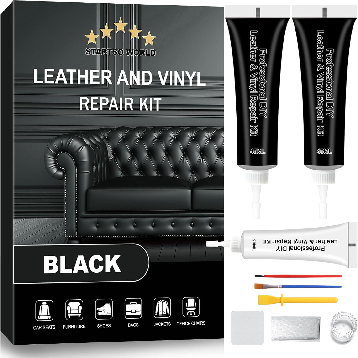 STARTSO WORLD Black Leather Repair Kit, Vinyl Repair kit for Car Interiors, Furniture, Couches, Car Seat, Sofa, Jacket and Purse, Restores Faux, Artificial, Genuine Pleather
