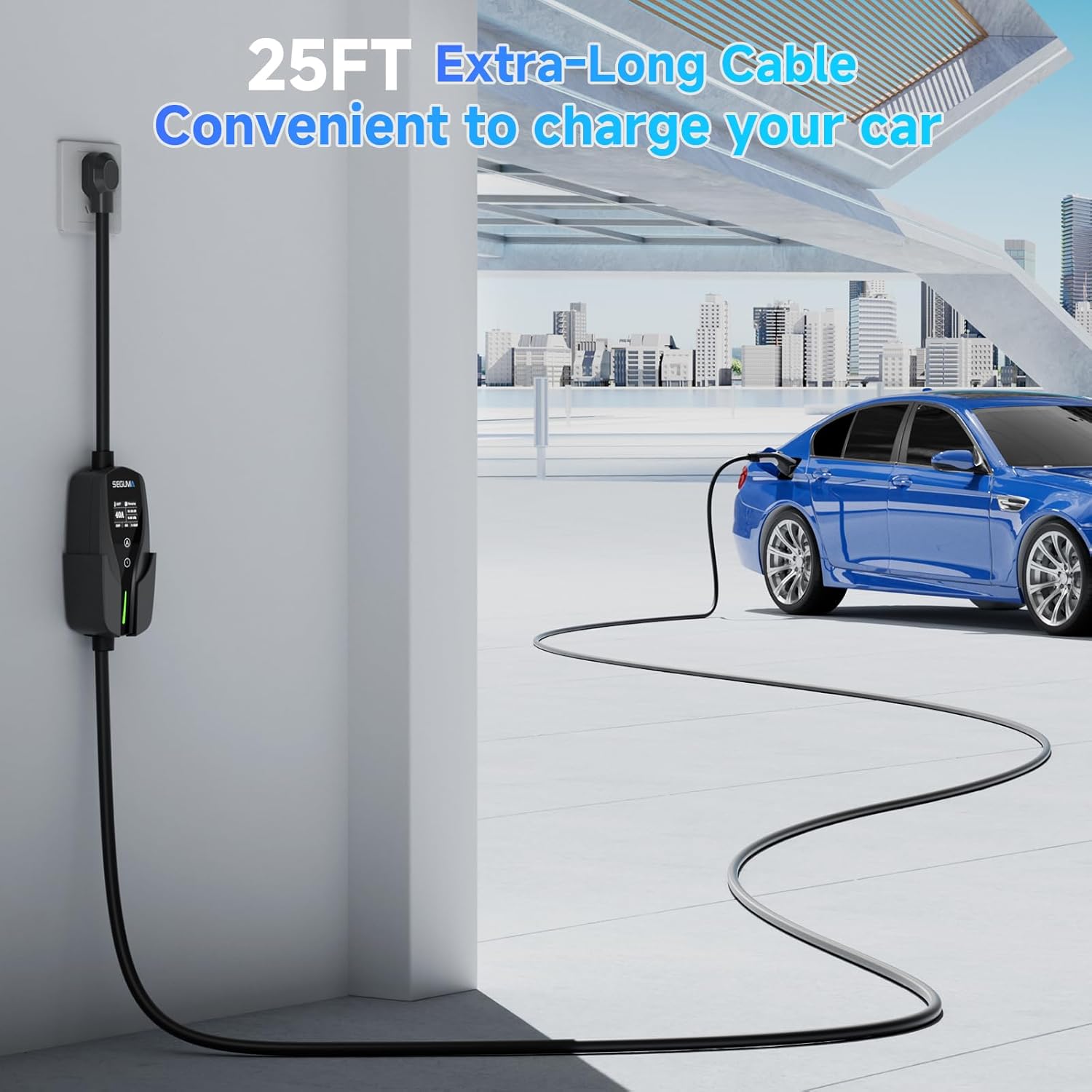 - Portable and Convenient: With extended 25ft cable,our ev chargers for home level 2 offers increased flexibility and versatility at home or on-the-go.The portable ev charger comes with a charger cable holder, a control box holder and a carry bag, it can work as a wall connector with its attached EV charger holder. Additionally, it can use as a mobile EV charger with the storage bag, allowing you to charge your EV anytime and anywhere
