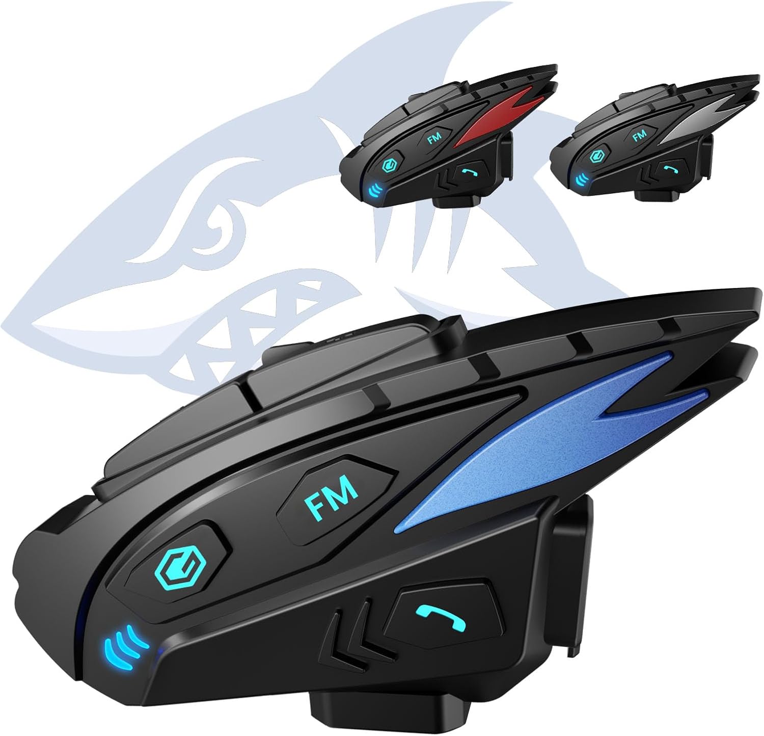 - Shark-Like Appearance & Interchangeable Color Strips : The Shark motorcycle helmet bluetooth headset features a streamlined biomimetic shark design that is windproof, noise-reducing, and incredibly cool. It comes with interchangeable three-color stripes, allowing you to customize the look, ensuring it matches any helmet type or color. It is the perfect choice for couples, lovers, and families who want to ride motorcycles together