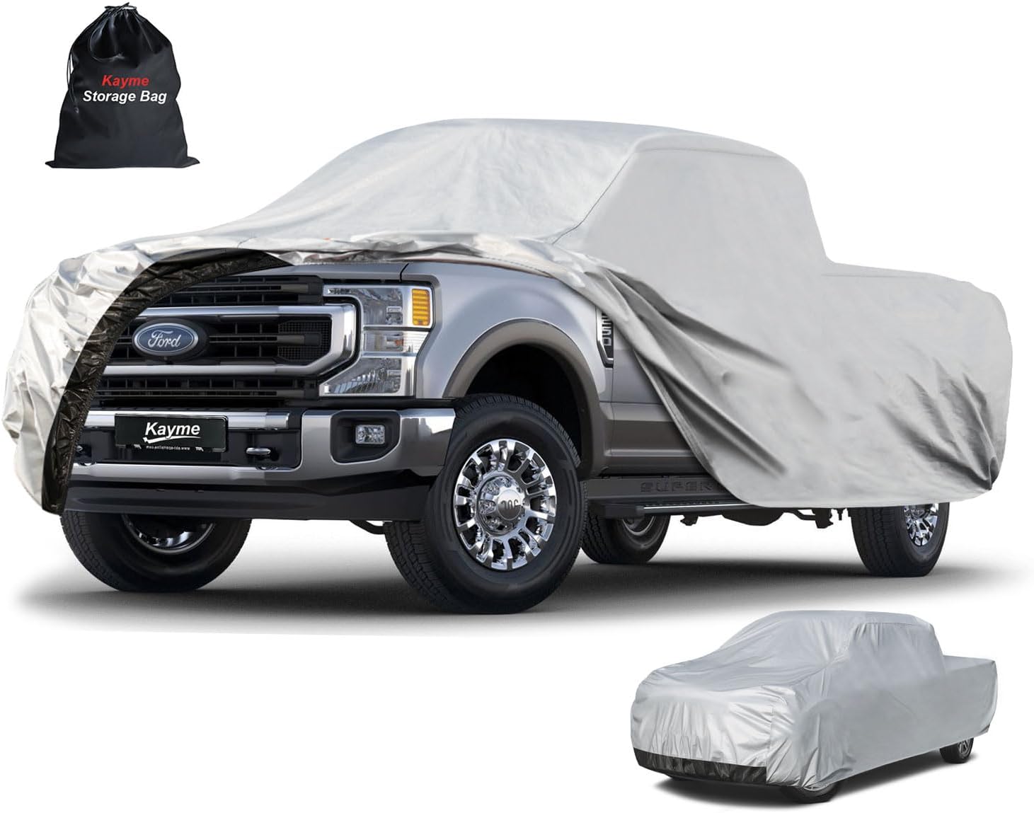 Kayme Full Size Truck Cover Waterproof All Weather, Heavy Duty Outdoor Large Pickup Cover Sun Rain Uv Protection, Universal Fit Ford F250 F350 RAM 2500 3500(Length Up to 262 inch) XXXL.Silver