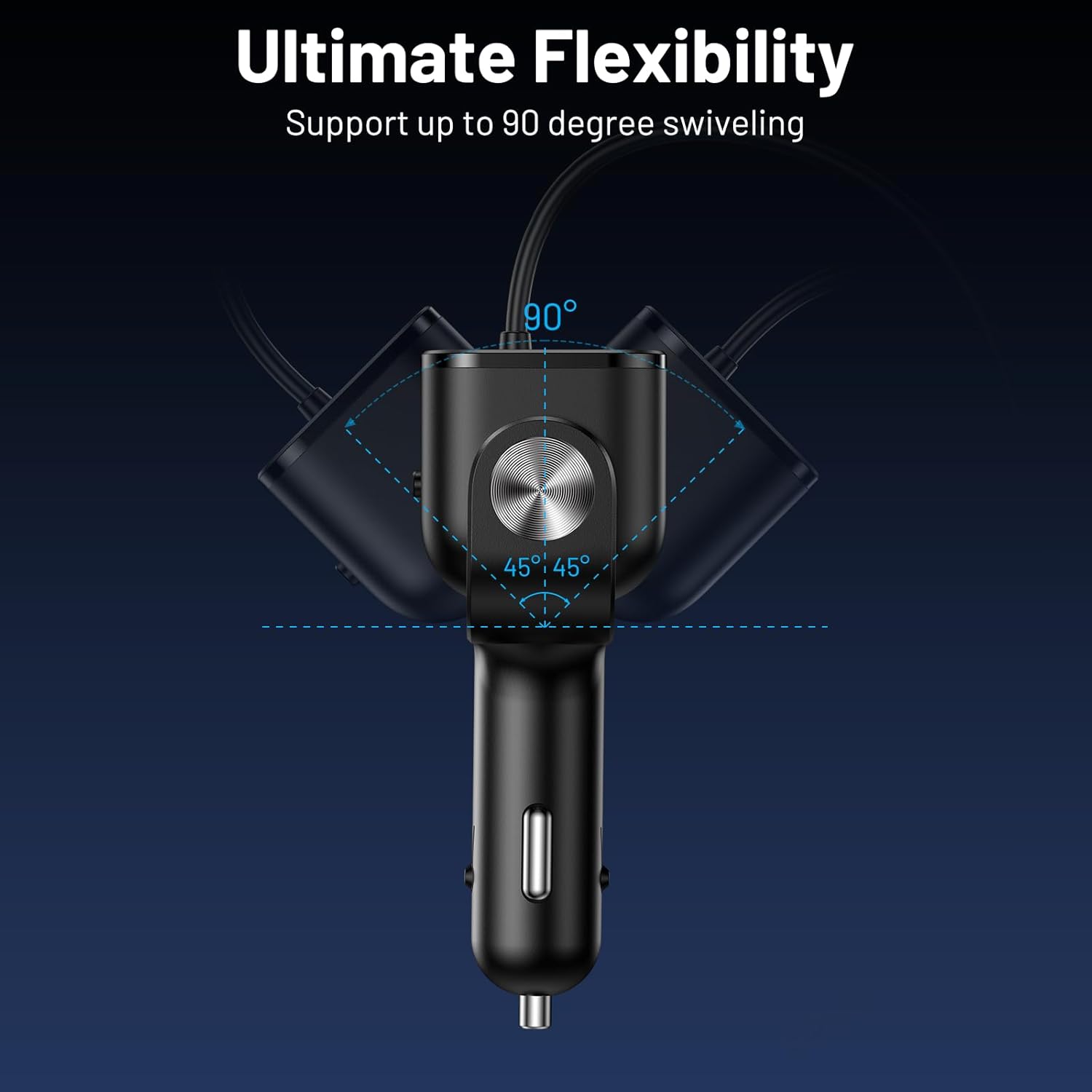 - ăFlexible 180° RotationăThe 180-degree rotation feature is incredibly user-friendly, making it easy to plug in and unplug the devices. Saves more space in your vehicles, to provide greater efficiency and convenience for your car. The double cigarette lighter adapter applicable for different cigarette lighter positions of different vehicles models new/older, for Ford F-Series/RAM/Chevrolet Silverado pickup trucks, for Toyota RAV4/Honda CR-V/Tesla Model Y SUV, off-roader, sedan, heavy trucks, supercar, RV, BEV, etc.