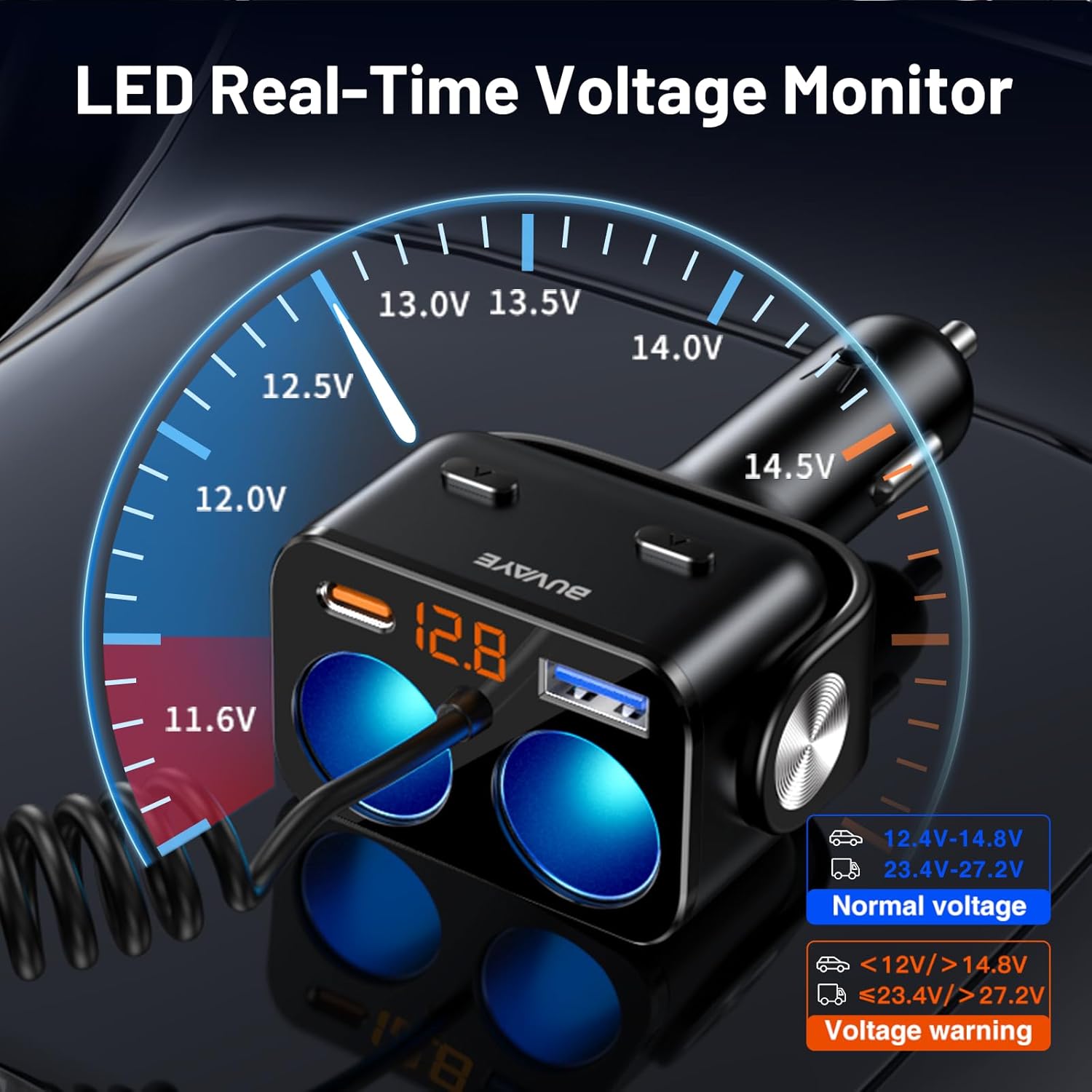- ăLarger LED Display and Voltage MonitorăLarge LED high-definition digital display screen monitors, can more accurately monitor 3 voltages in real time - 1x car battery voltage and 2 x USB-A charging voltage. Intelligent real-time voltage detection and LED screen display, timely monitoring of your car battery, to avoid the situation of running out of power and so on. 12V voltage normal range: 11.6V~14.8V; 24V voltage normal range: 23.1V~27.3V.