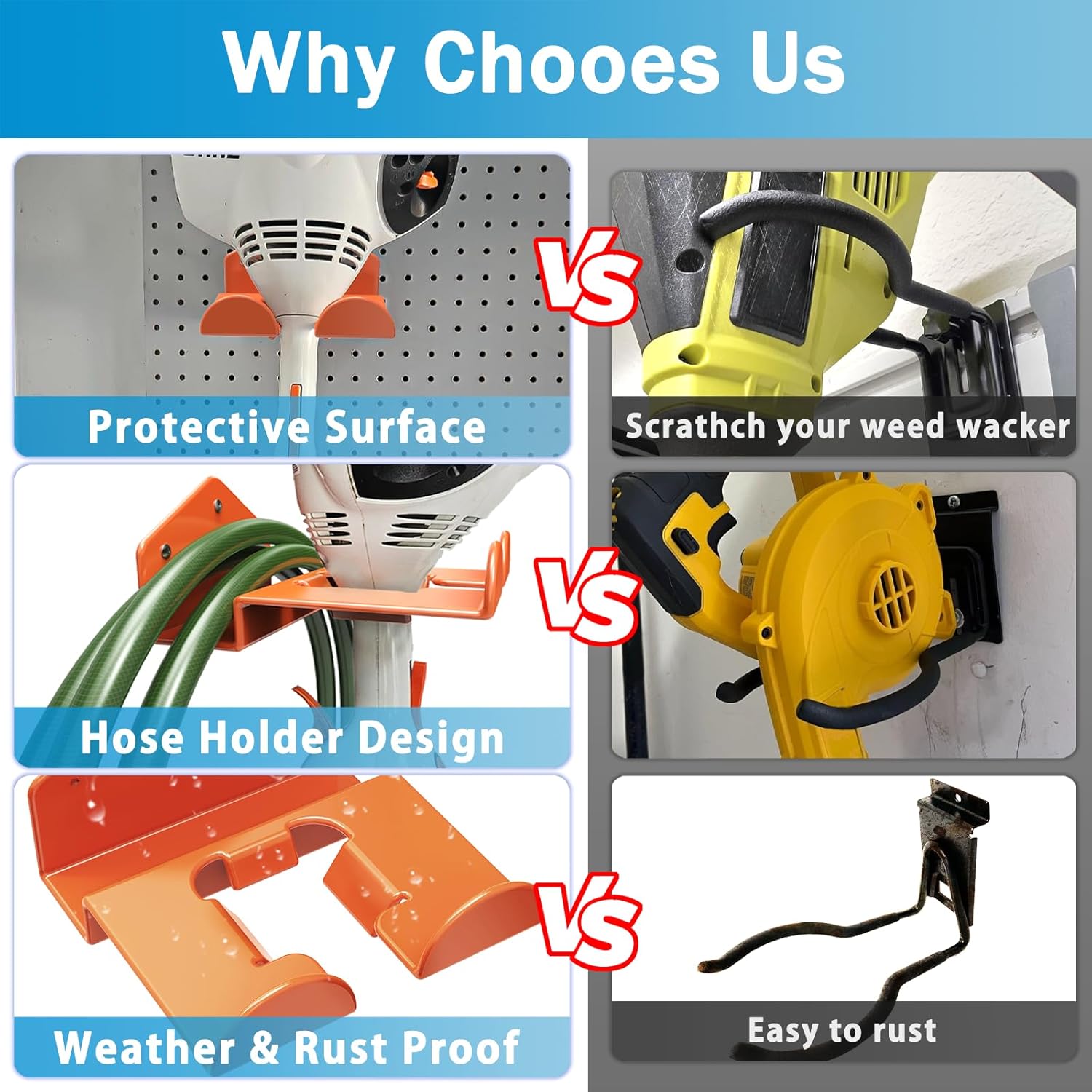 - 【Space Saving】The Weed Eater Hanger can organize the scattered trimmers in the garage to make your garage more tidy and organized saving time and space, you are free to place your tools where you like