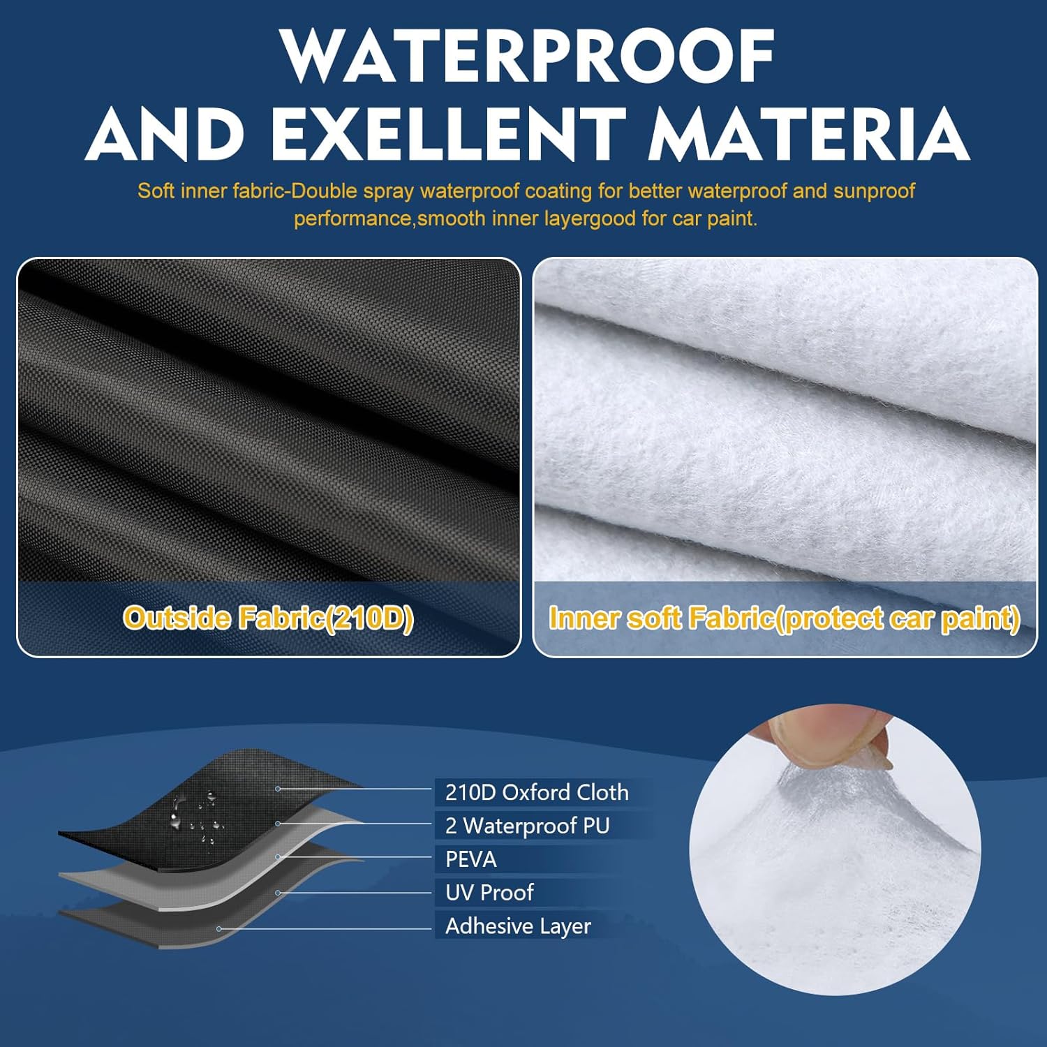 - ă6 Layers Superior MaterialăMade of High reflective black spray coating, waterproof black coated layer, 210D oxford fabric, Composite layer, black waterproof coating, soft lint layer. With 2000 water pressure for waterproof! Will NOT cause damage to your car!