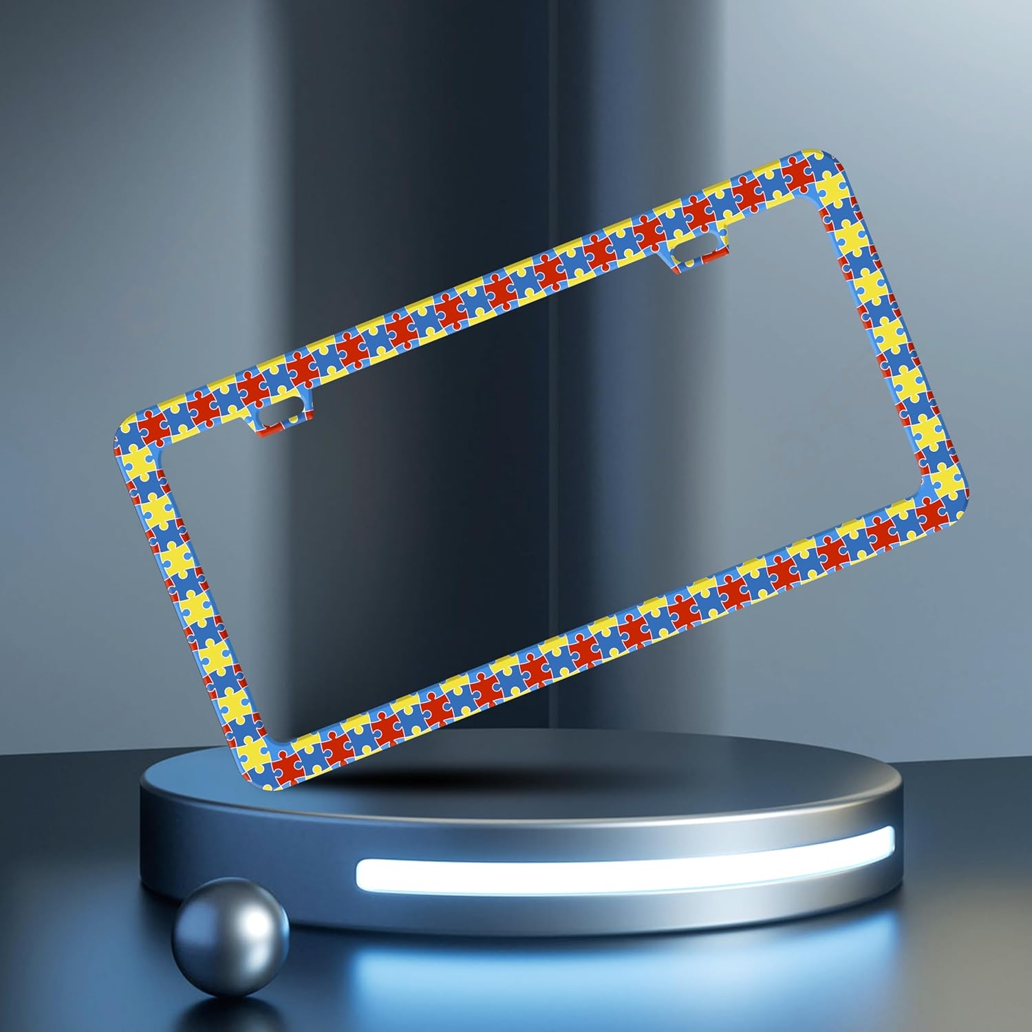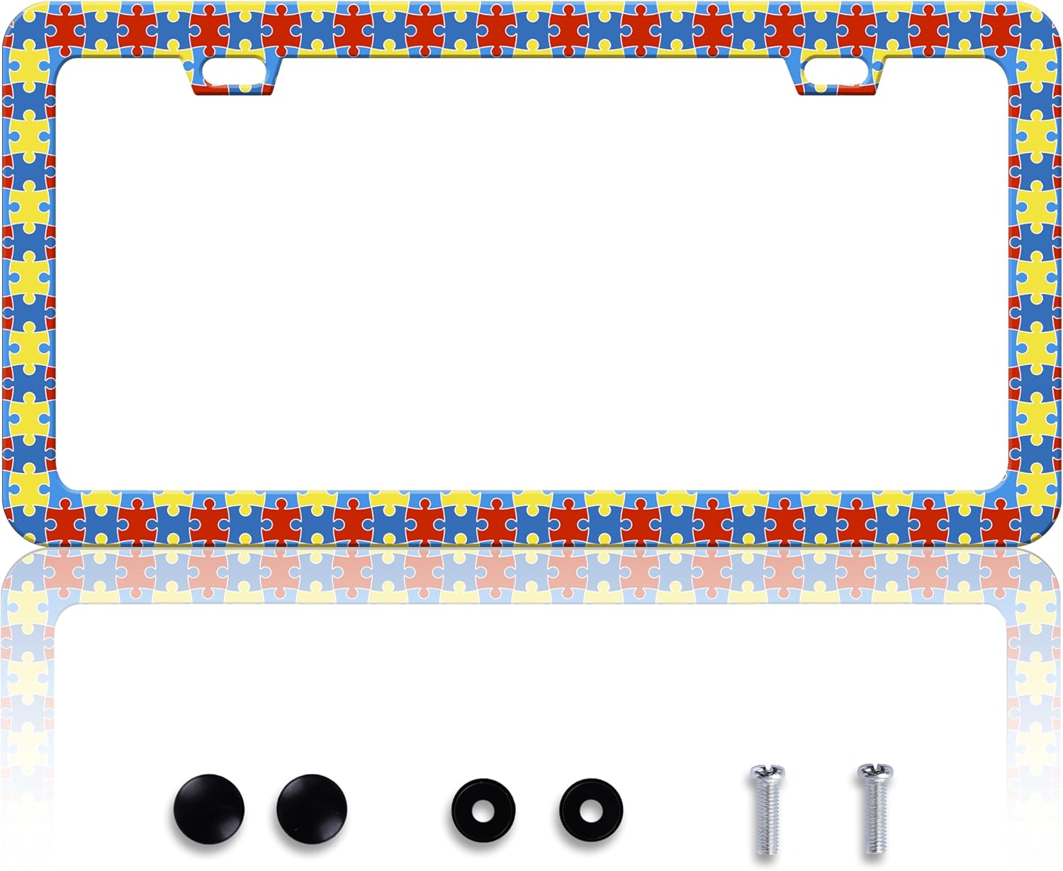 Autism Awareness License Plate Frame Puzzle License Plate Frames Personalise Stainless Steel Funny Design Compatible with Standard License Plate Holder for USA Canada 6 X 12 Inch 2 Holes with Screws
