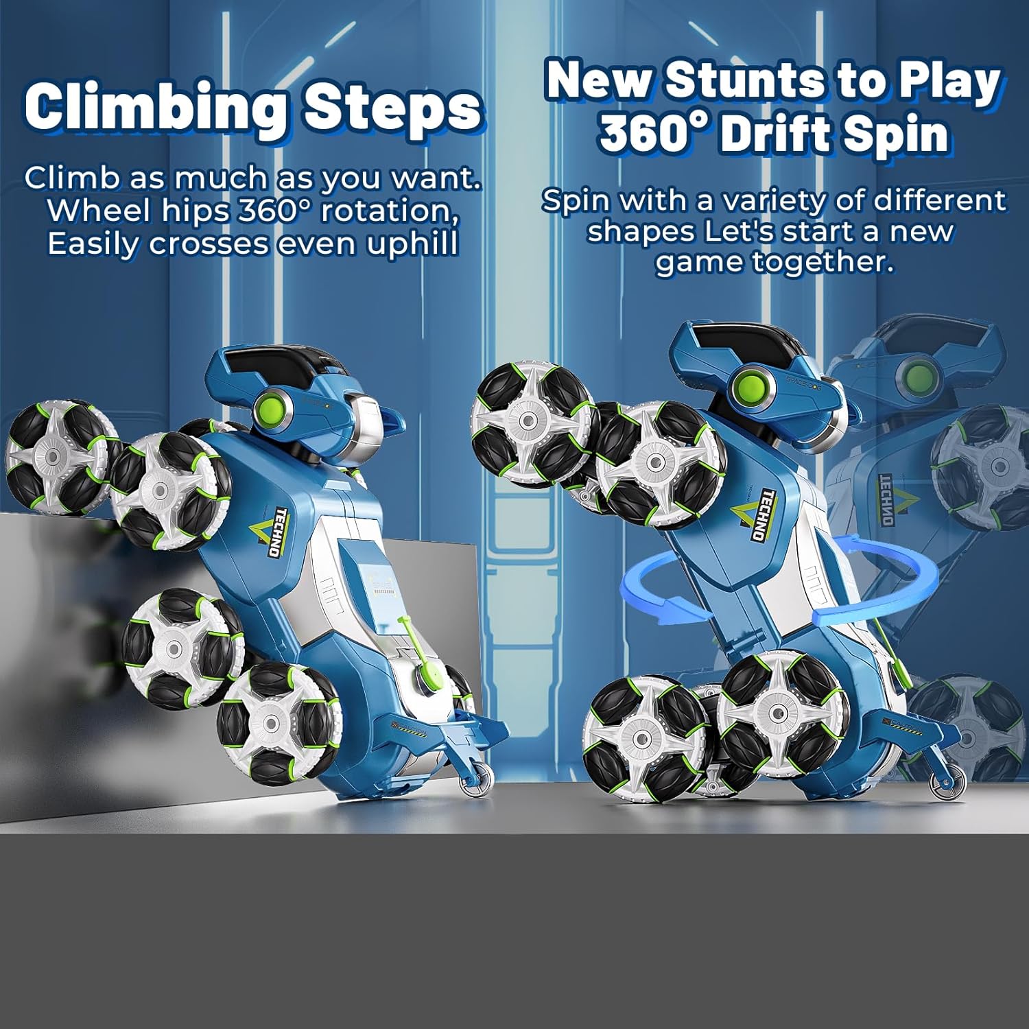 - Solid bodywork & all-terrain driving:Designed with High strength ABS body and robust bionic joints,Powerful 8WD stand -alone designed ,Roller traction tires with shockproof and slip resistance to handle any terrain easily, be it gravel, grass, sand, or stairs, can freely switch between on-road and off-road modes,enabling spectacular stunts in diverse environments, Let You child taking fun to every corner,best toys for ages 8-13 6-8 to play