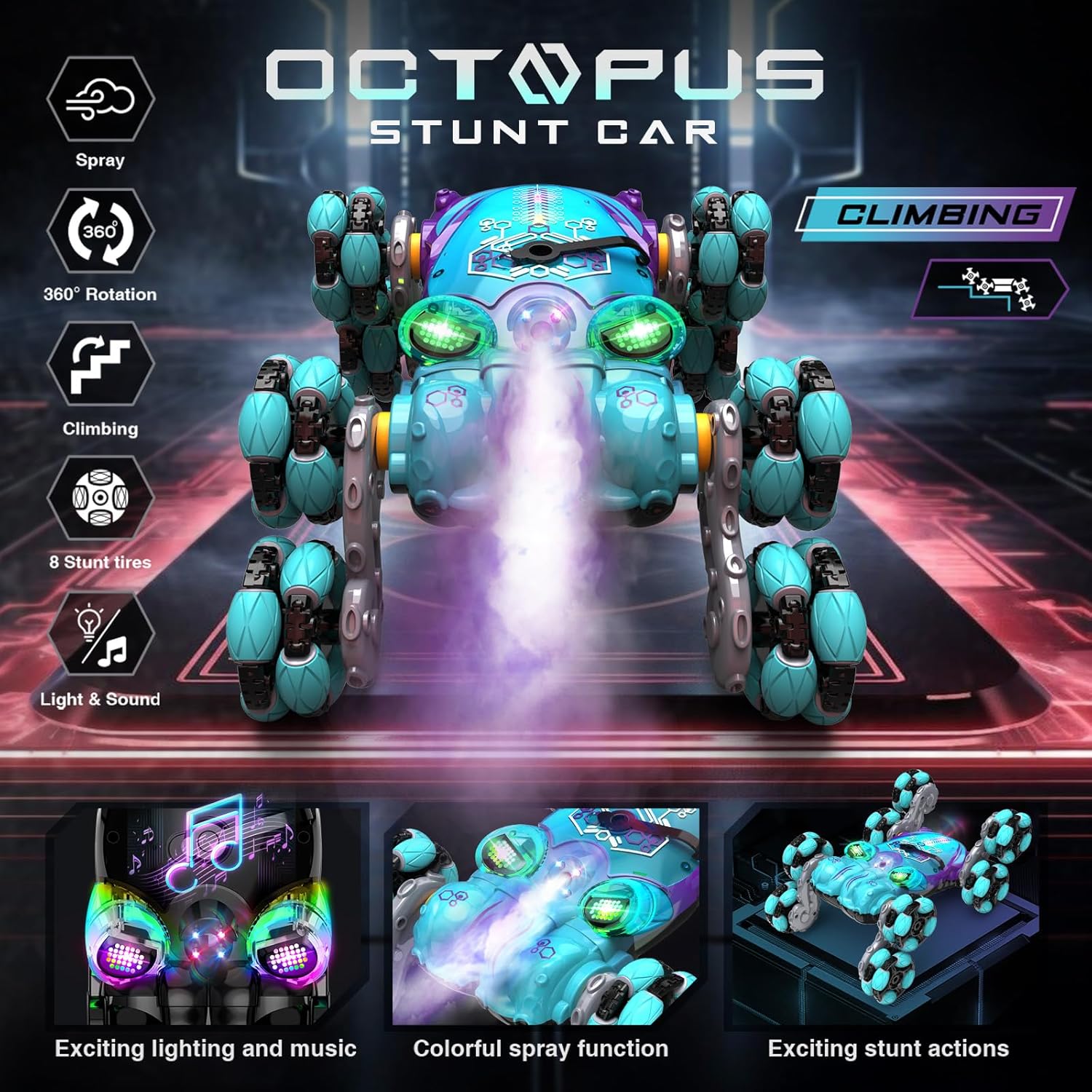 - Cool Spray Lights and Music: Watch in awe as your RC car comes to life with cool spray effects and vibrant LED lights. These features create a dynamic play experience, making every race or stunt show more exciting and visually captivating