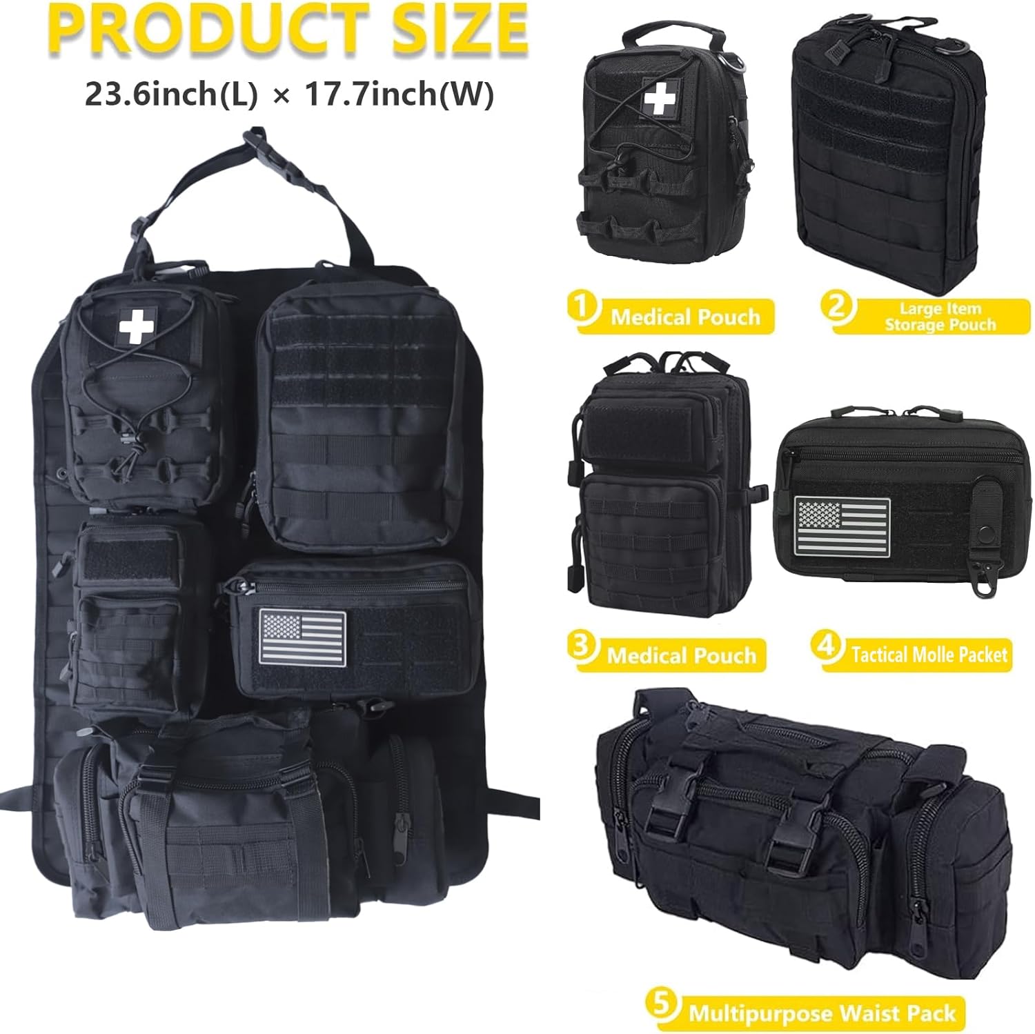 Universal Tactical Seat Back Organizer Vehicle Molle Panel Organizer Storage Bag with 5 Detachable Molle Pouch for All Vehicel Such as Jeep,Truck,SUV, Car, Ford,Chevy etc