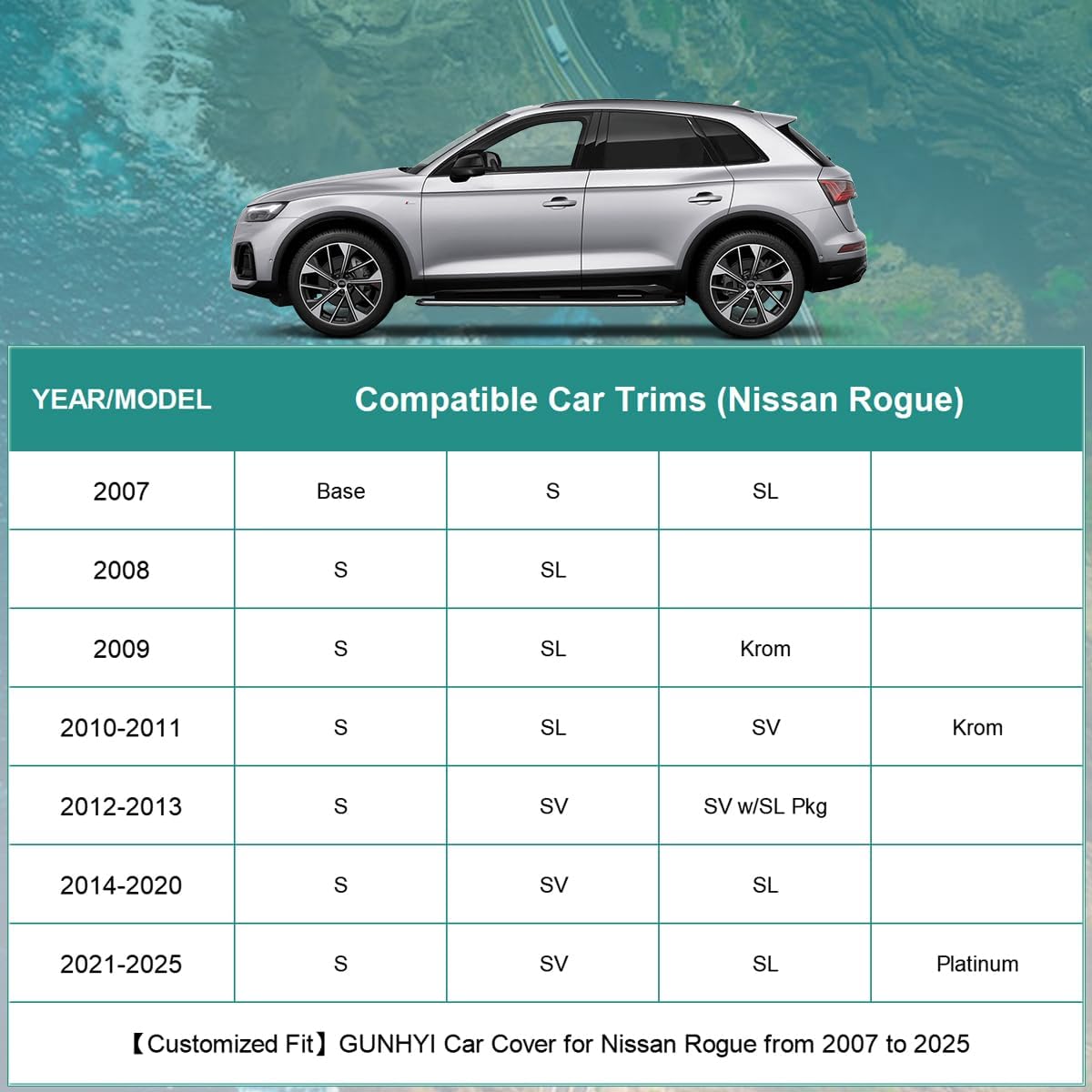 - ăCompatible withăThis Full Car Cover Custom fit for Nissan Rogue from 2007 to 2025. Comes with a microfiber towel that you can use to clean your car, because if there is sand on the surface of the car before use, it may damage the paint.