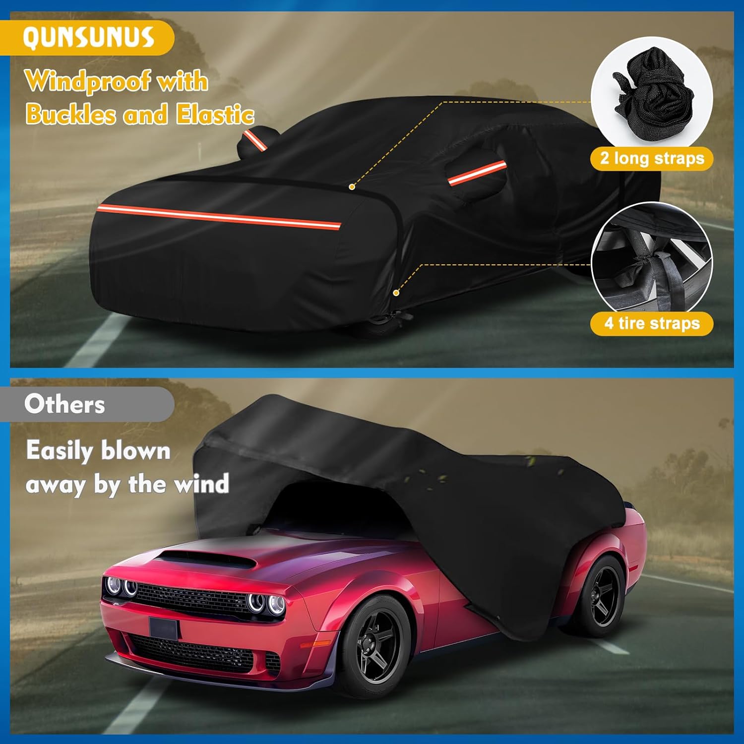 QUNSUNUS 6 Layer Car Cover for Dodge Challenger 2008-2023 Waterproof All Weather Windproof for Dodge Car Cover Hail Protection with Zipper