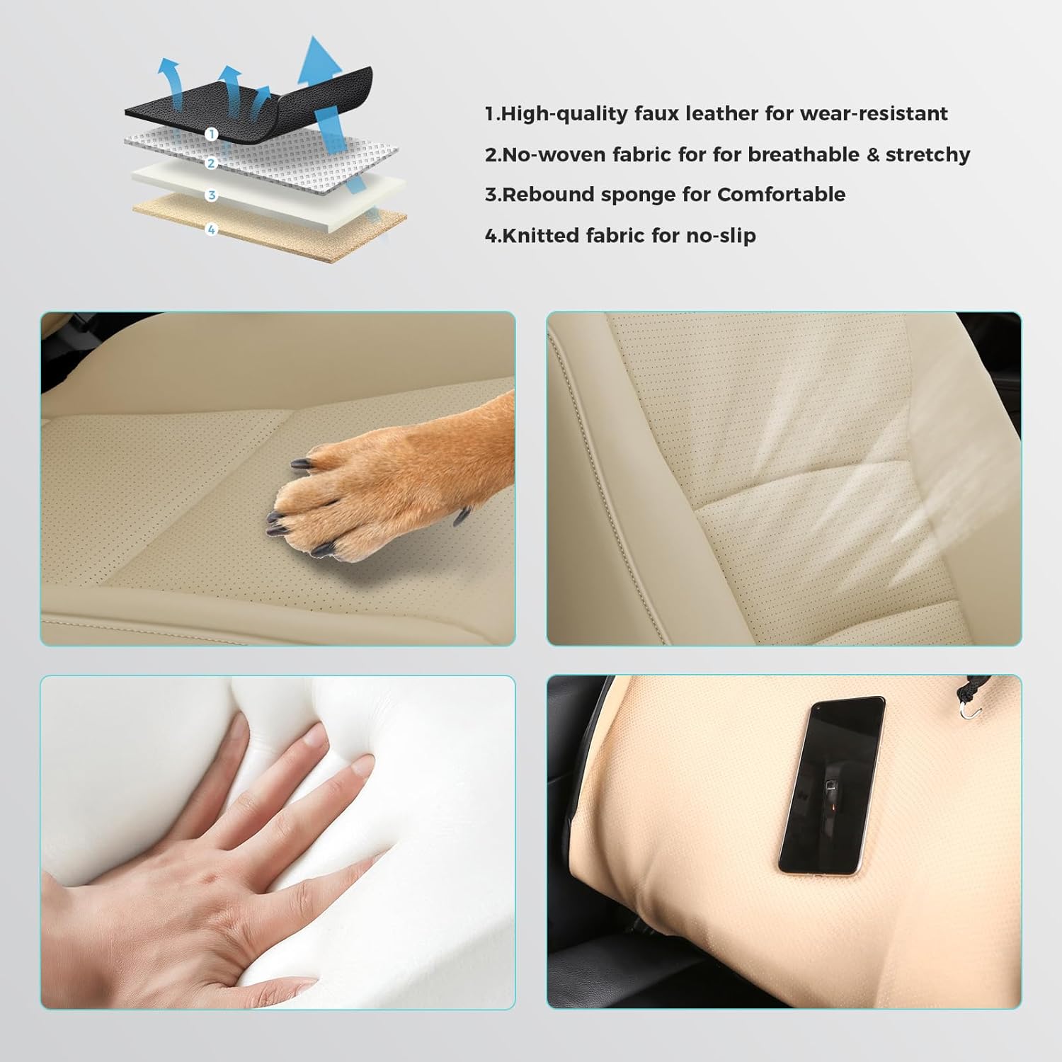 - ăPremium Car Seat Protectionă: These waterproof car seat covers feature a four-layer construction, providing superior protection against spilled coffee, pet scratches, and the hot sun. They are easy to clean with just a damp cloth, ensuring your car seat covers last for a long time.