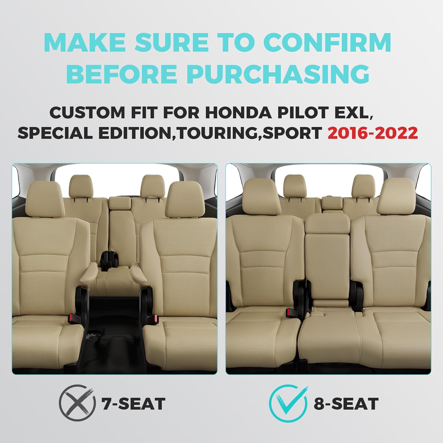 for Honda Pilot Seat Covers,Car Seat Protectors Full Set Custom Fit Pilot EX-L, Special Edition, Touring, Sport 2016 2017 2018 2019 2020 2021 2022-8 Seats, Full Coverage Waterproof, Beige