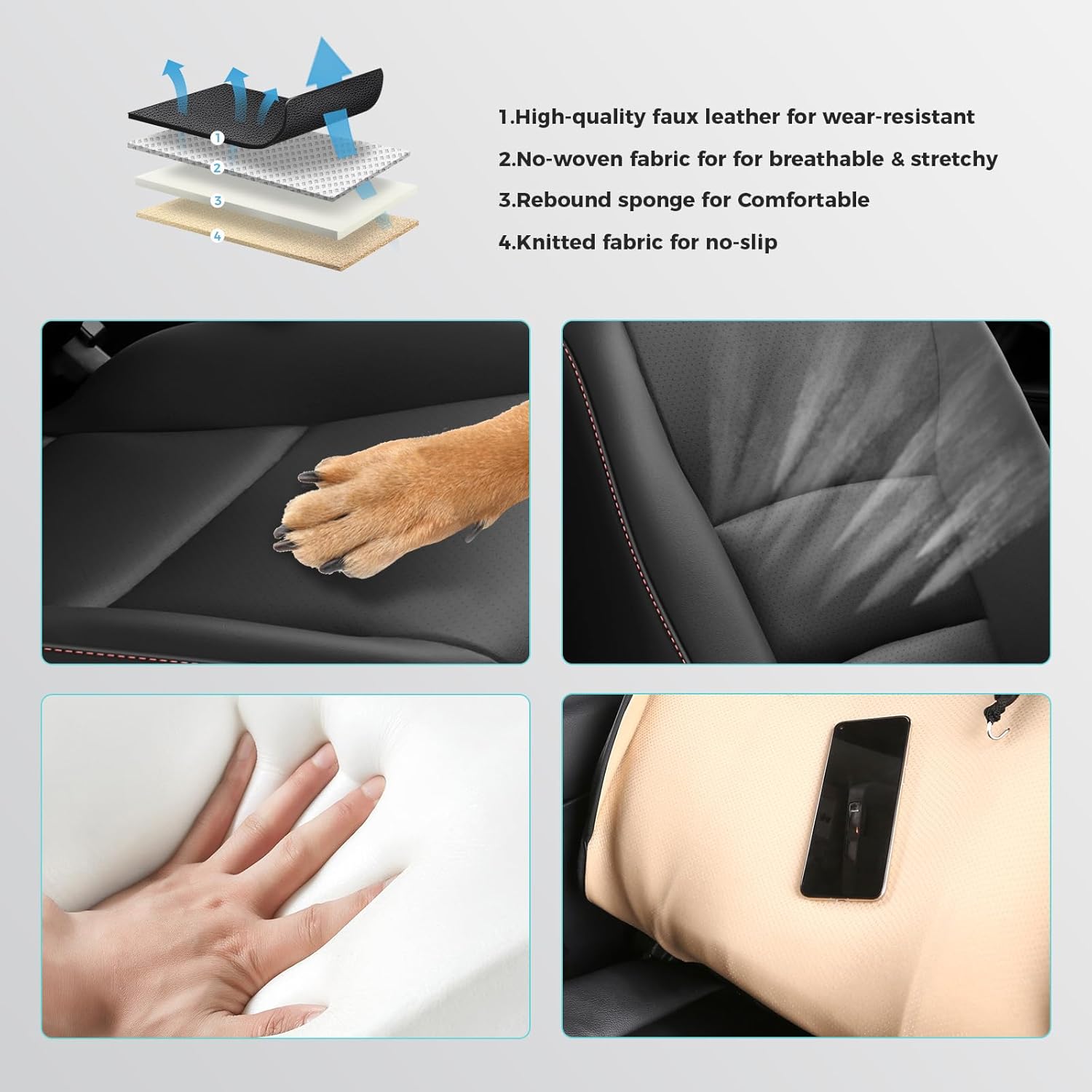 - ăPremium Car Seat Protectionă: These waterproof car seat covers feature a four-layer construction, providing superior protection against spilled coffee, pet scratches, and the hot sun. They are easy to clean with just a damp cloth, ensuring your car seat covers last for a long time.