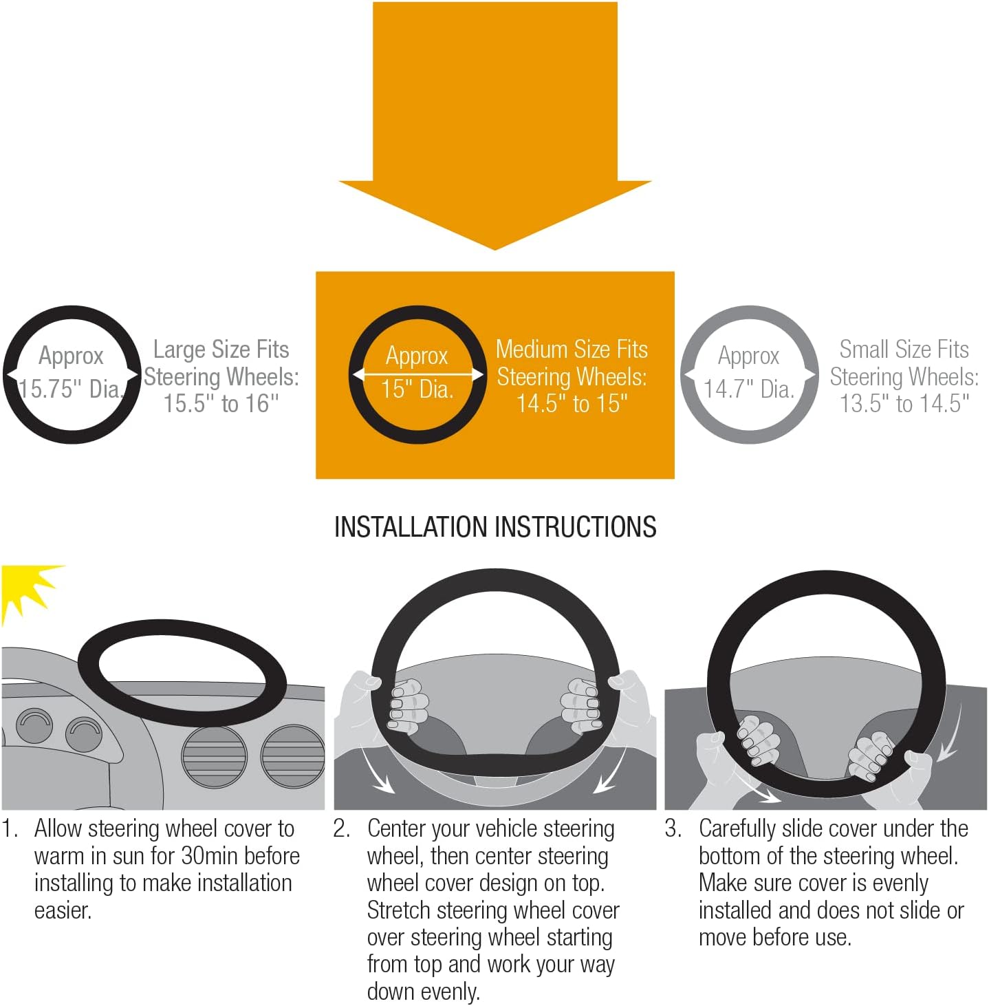 - UNIVERSAL DESIGN - Fits most standard size steering wheels for Cars Compact SUVs Mini-Vans and Mid-Size Trucks; Fits steering wheels with a diameter of 14.5" to 15"