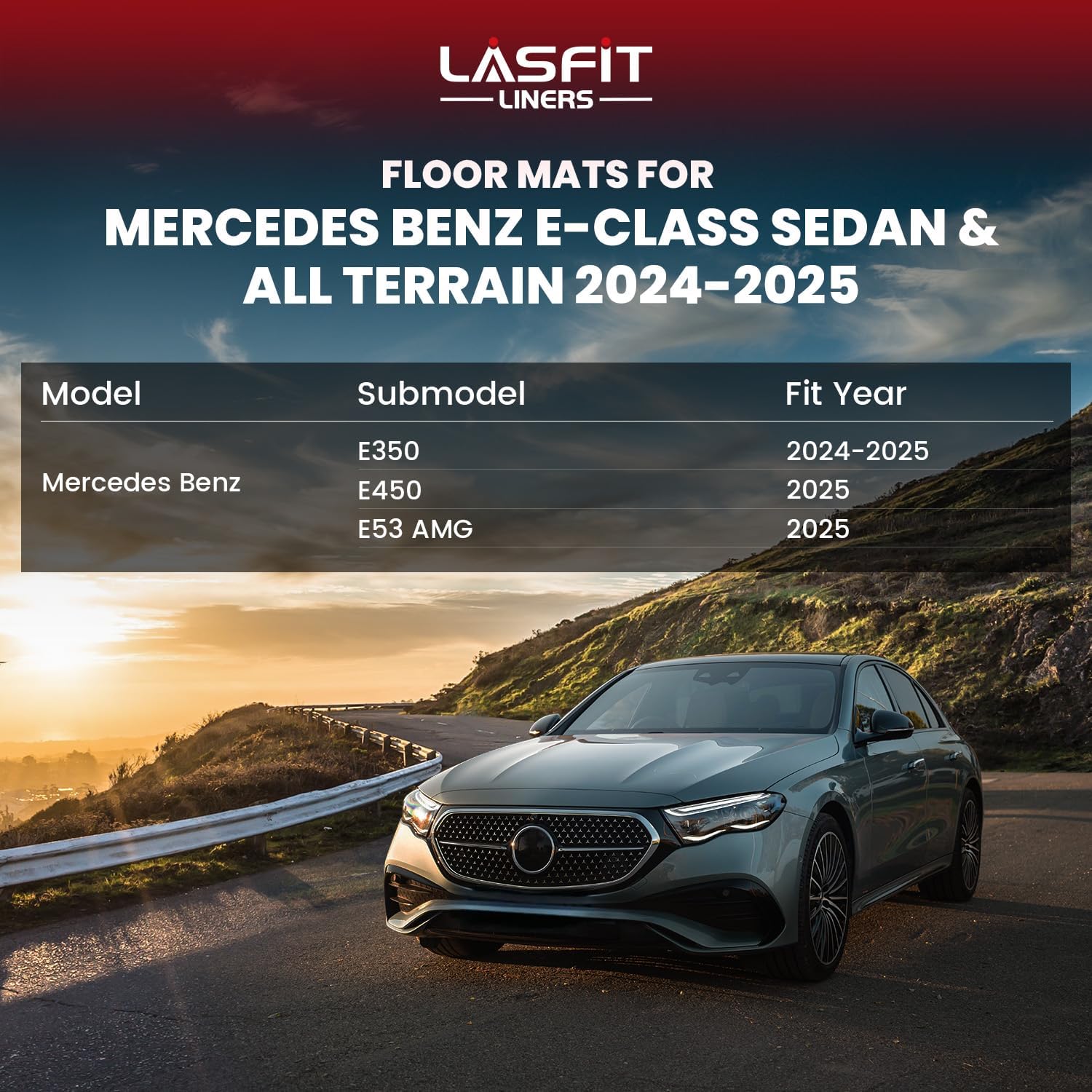- Custom Fit : State-of-the-art 3D laser scanning technology ensures the perfect custom fit for Mercedes Benz E Class E350 / E450 / E53 AMG 2025 2024 (Sedan & All-Terrain only) with full coverage. LASFIT floor mats are precisely tailored for vehicle-specific floor carpets. Includes the 1st & 2nd row floor mats.