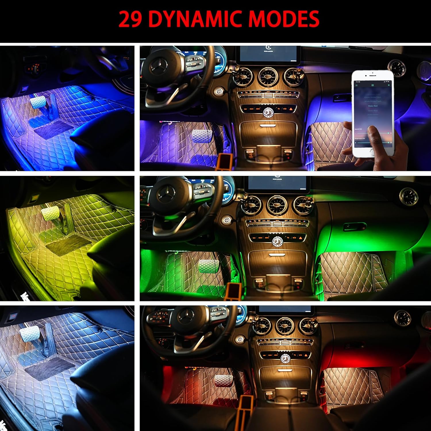 - Cool decorative: Our car interior strip light has 16 million colors and 29 dynamic modes. There are so many options that you can freely switch according to different moods and preferences to make every trip for yours full of surprise