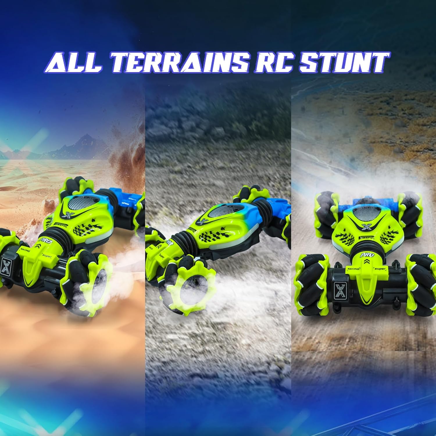 - 4WD Gesture Sensing Stunt Car:This rc stunt car can drive and drift in all directions, 360° rotation, 45° climbing, snaking, double-sided flip, twist into off-road and on-road modes.children to operate this off road stunt car via 3 senstive control modes easily. Loads of fun for your kids.