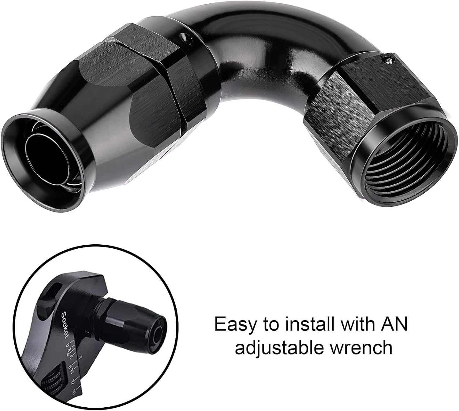 - [Application] These fittings are ONLY used with PTFE fuel lines for E85, alcohol, nitro, clutch, nitrous, power steering, oiling, hydraulics, and vacuum applications. A 360° swivel design allows for easy assembly.
