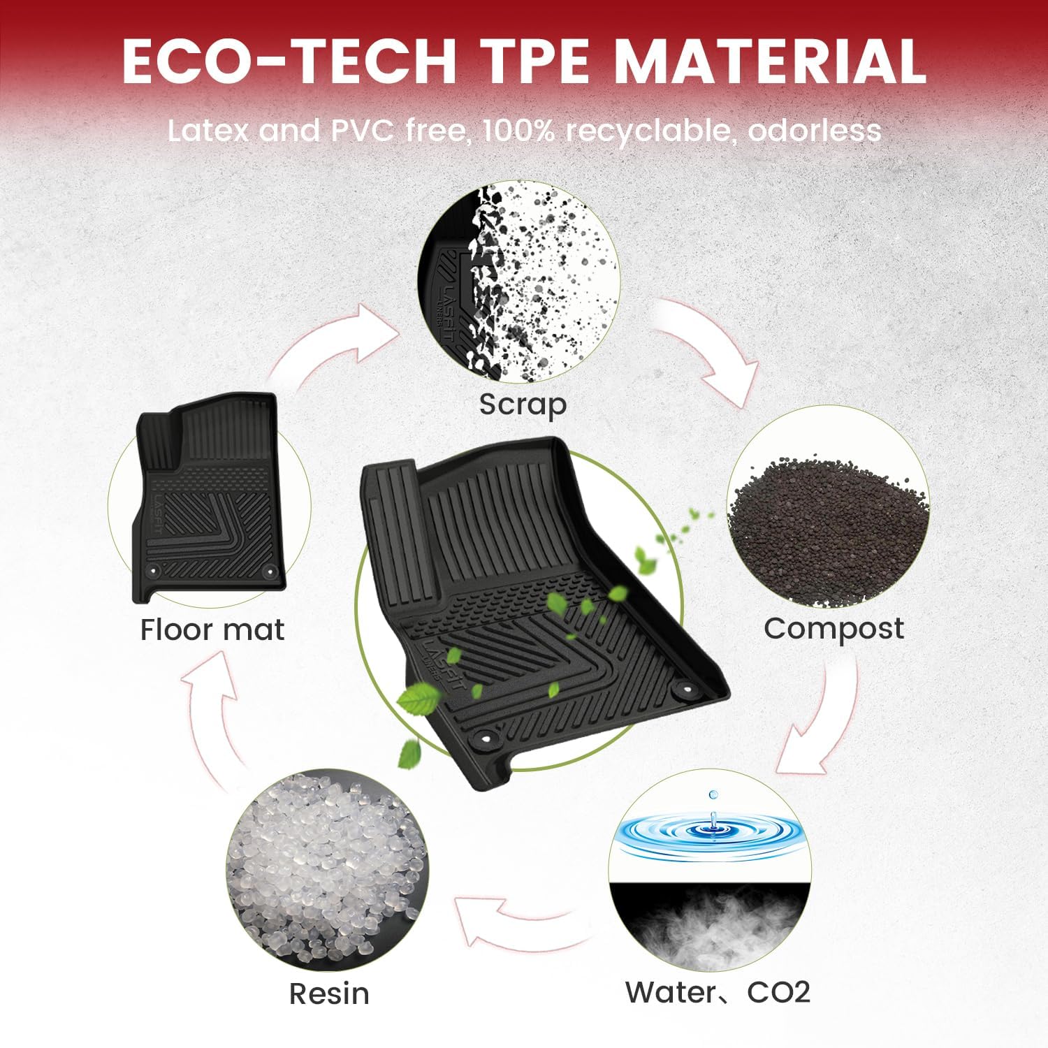 - Premium TPE Material : LASFIT R1S floor mats made of 100% brand new TPE material (Thermoplastic Elastomer) for a comfortable and soft touch and exquisite finish. More friendly to the elderly, children and pets. Exclusively designed anti-slip studs for more safety and shock and sound absorbent
