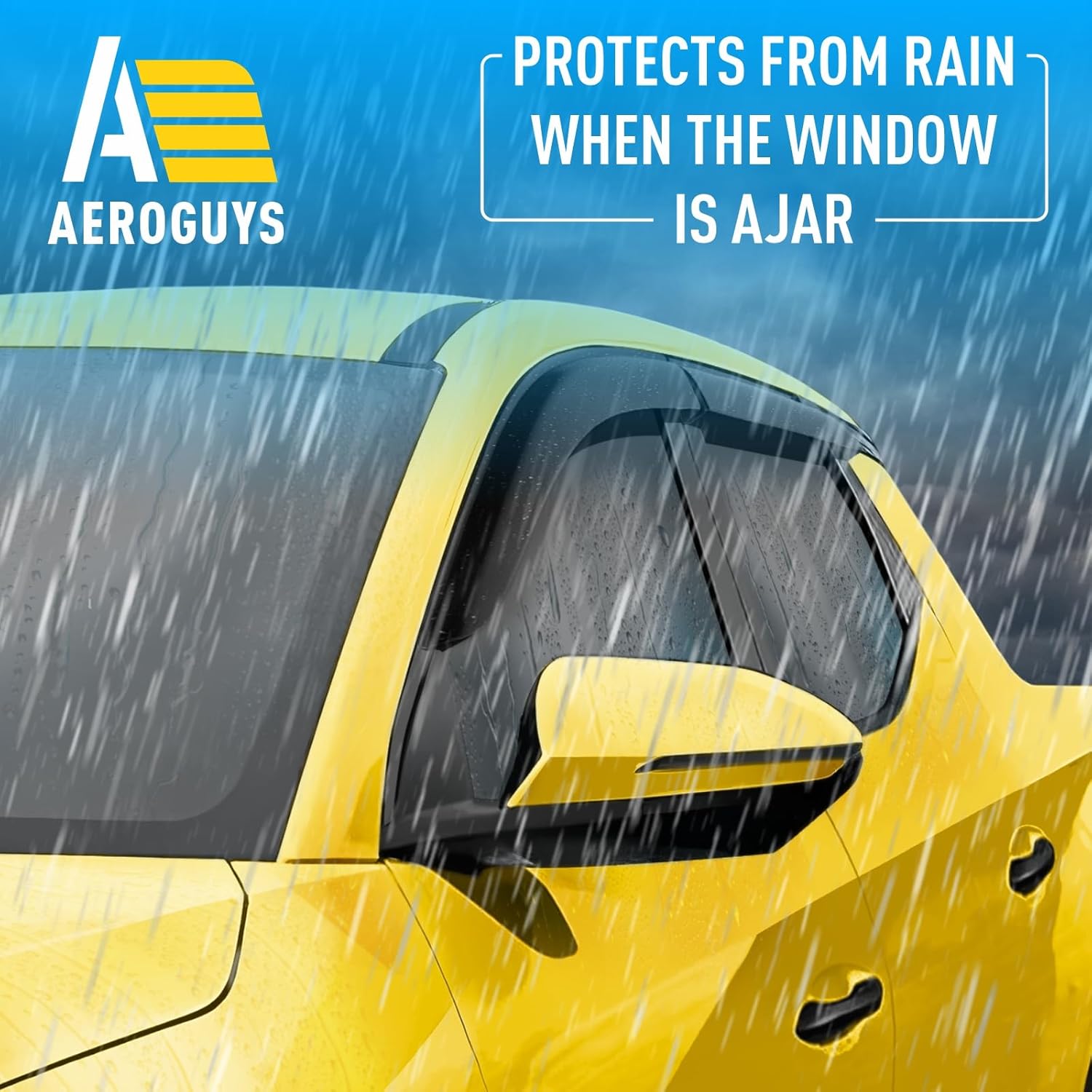 - Incredibly Durable AEROGUYS Auto Window Deflectors – They are made with strong and tough polycarbonate which is clear and scratch-resistant. They also provide UV protection making your ride more comfortable under all weather conditions.