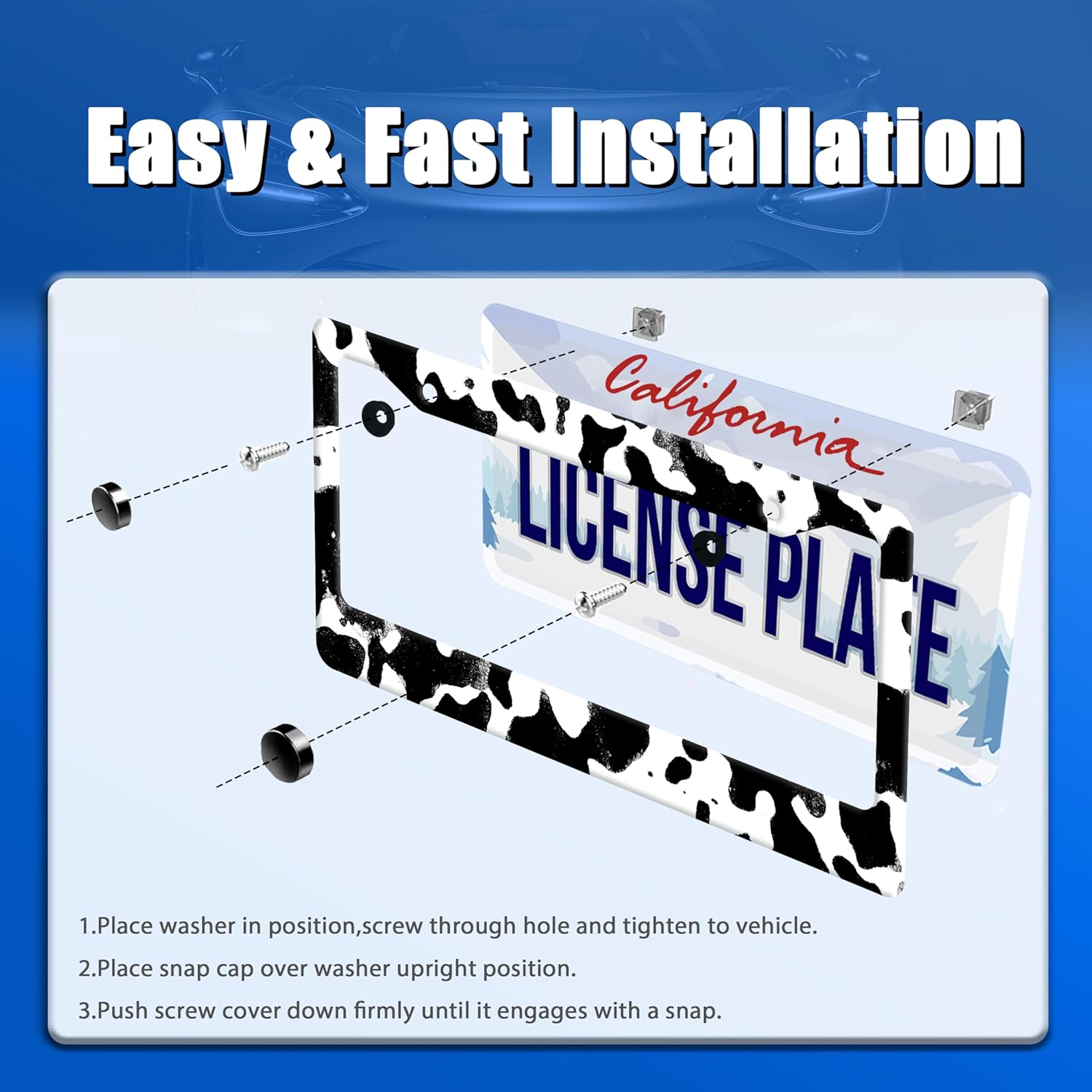 - Design:Use Advanced digital printing Protects license plate frames from Whether it's a car wash, heavy rain or hot weather, it still looks brand new,Let your car still be unique and stylish while driving on the road