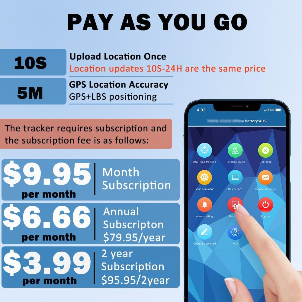 - ăLow-Cost Subscription & Lifetime Warrantyă Save with flexible plans starting at $9.95/month, including real-time tracking, geofencing alerts, and 6-month location historyâno hidden fees. Backed by a lifetime warranty, TKMARS ensures reliability for your tracker device for vehicles, whether used on cars, bikes, boats, or pets.