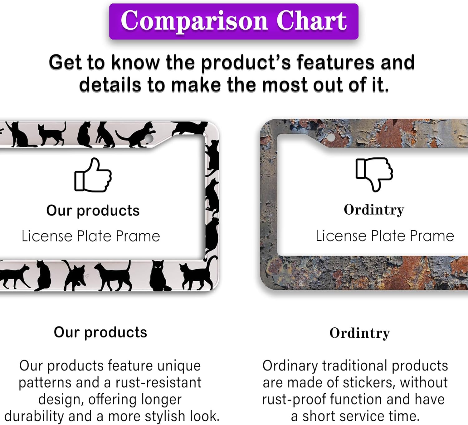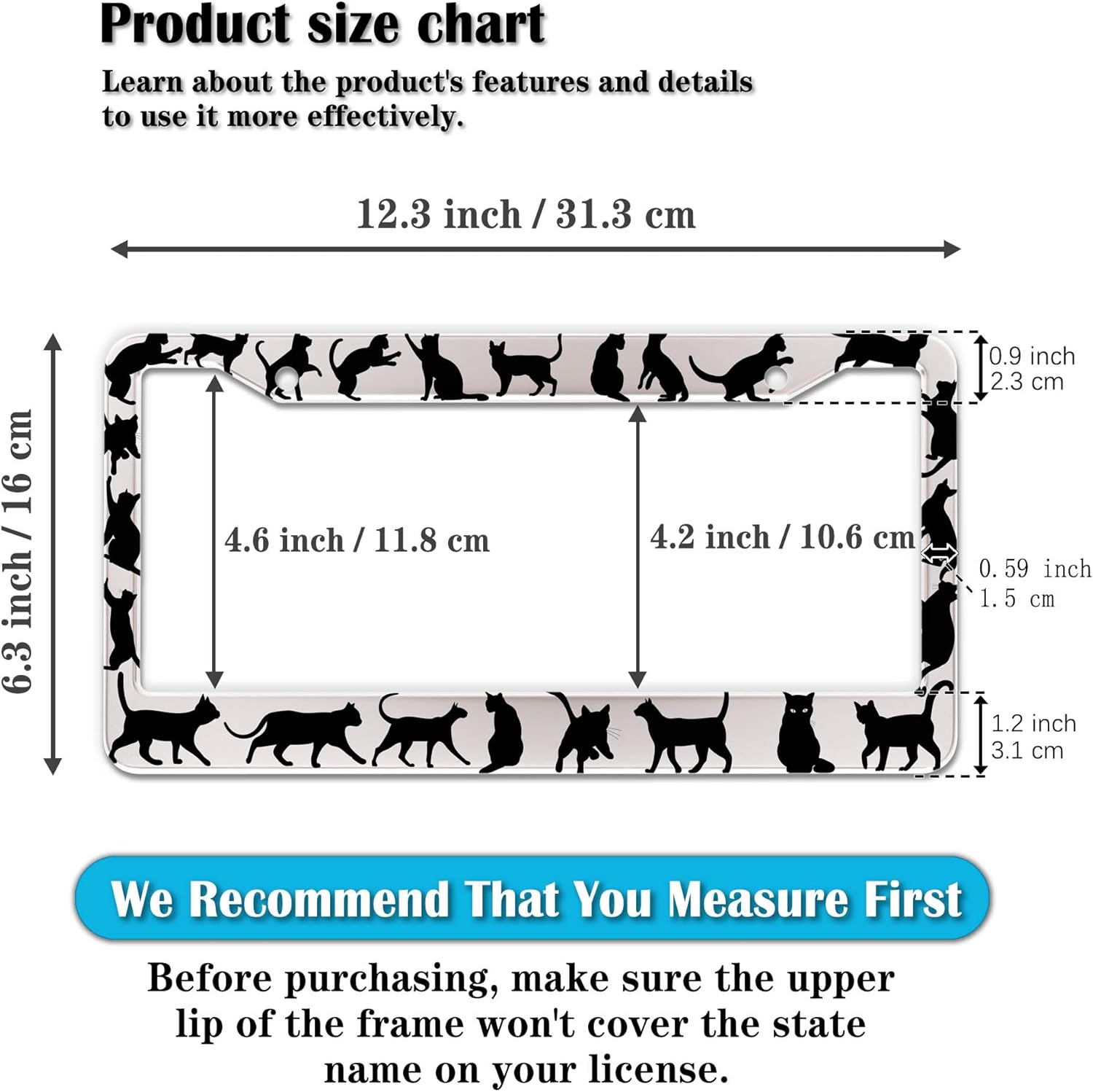 License Plate Frames for Women Black and White License Plate Frame for Men Black Cat Aluminum Metal Car Accessory 2 Pack with Screw Covers Set