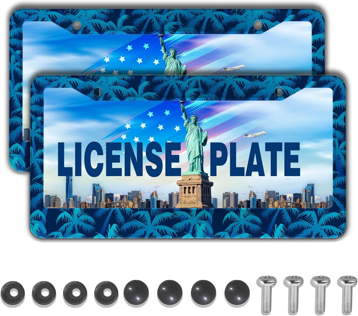 - PACKAGE CONTENT: This package includes 2 license plate frames (1 for the front and 1 for the back), along with 4 screws, 4 caps, and 4 fasteners with washers. Installation is a breeze, taking just a few minutes to transform your vehicle's appearance and give it a fresh, stylish look.