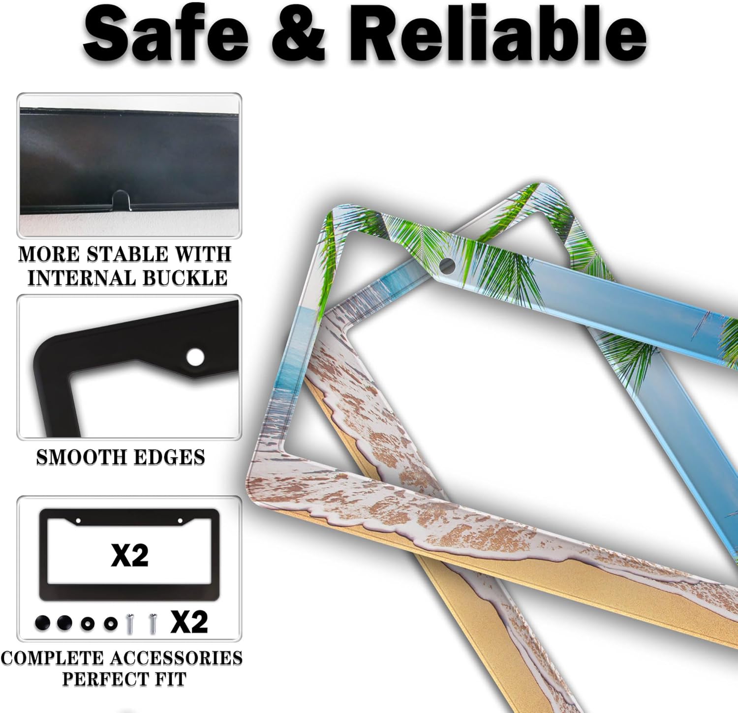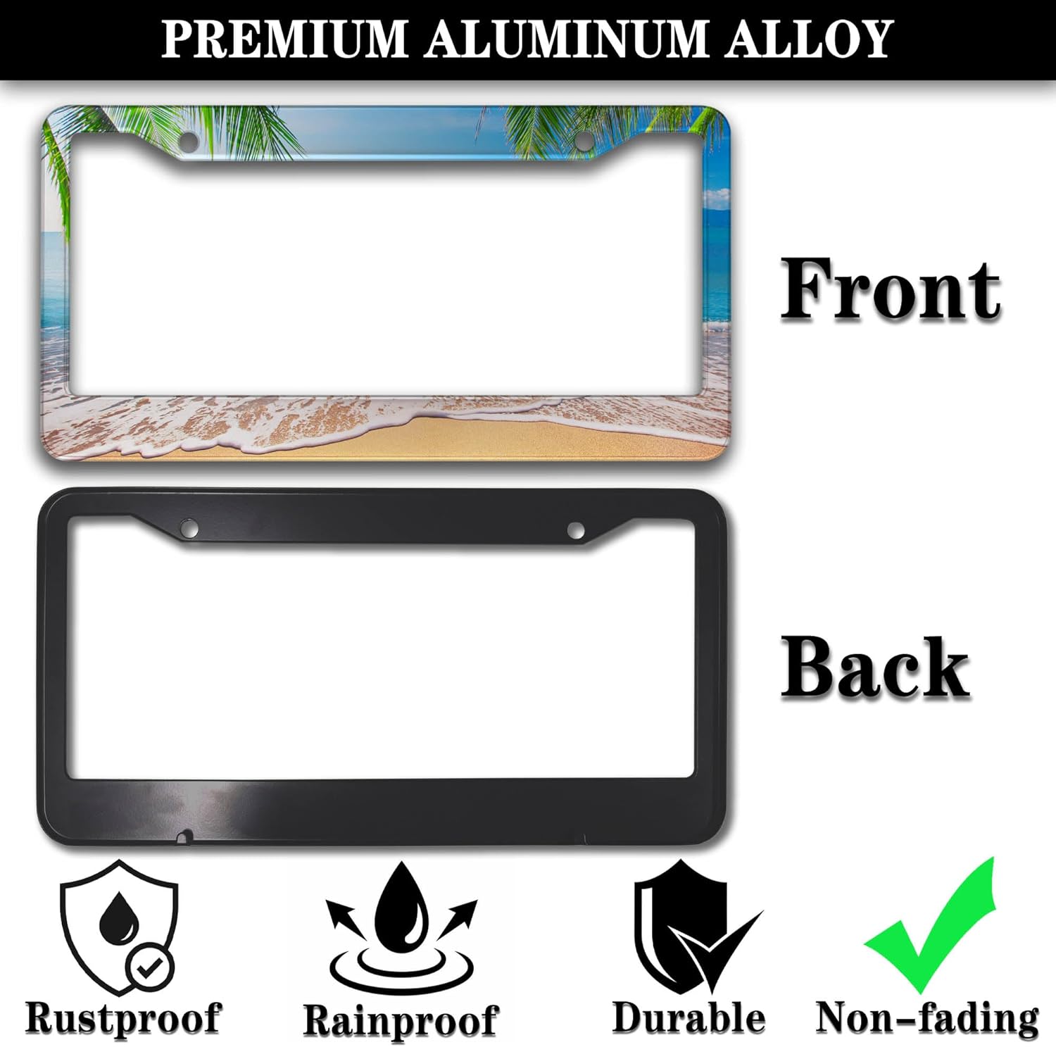 License Plate Frame Multicolor License Plate Holder Palm Trees with Tropical Ocean Beach Scene Aluminum Metal Car Accessory 2 Pack with Screw Covers Set
