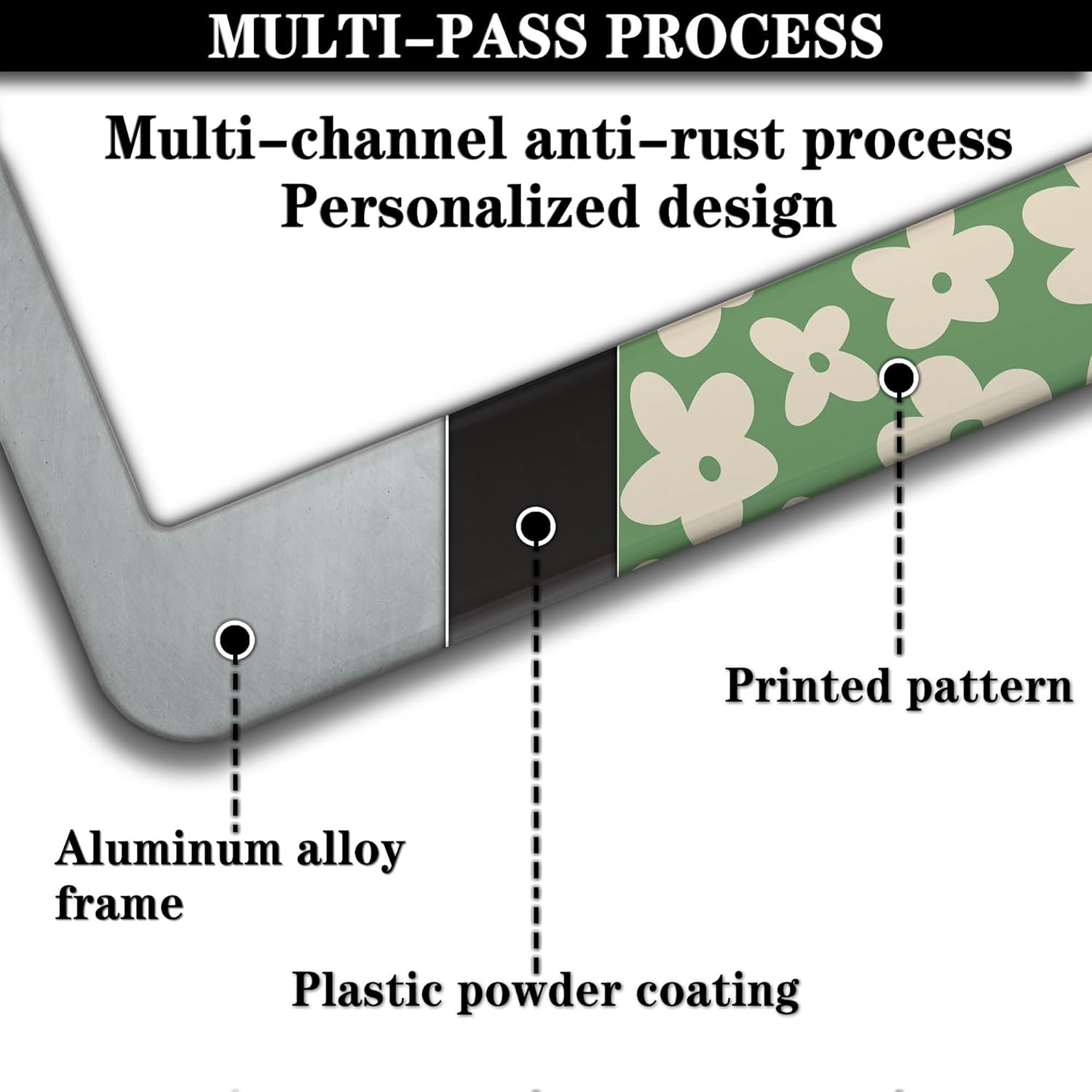 - ALUMINUM FRAME: This License Plate Frame is crafted from high-quality aluminum that is resistant to corrosion, rust, and harsh weather conditions. Its rugged reliability design ensures a long lifespan, making it capable of withstanding car washes and extreme weather, providing you with a reliable and stylish solution for your vehicle.