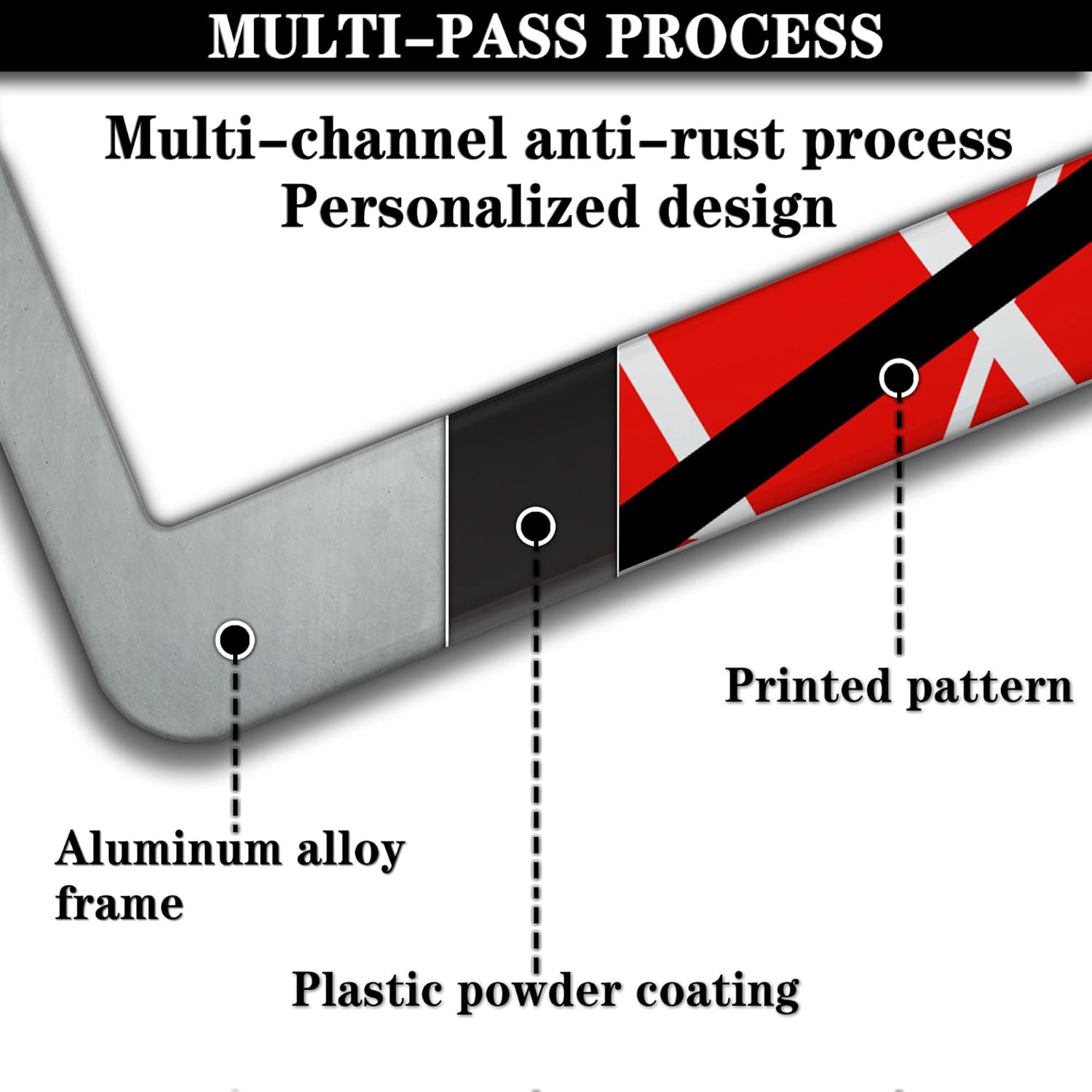 Automotive Exterior Accessories Red, Black, White License Plate Frames Rock Guitarist Red Black White Stripes Aluminum Metal Car Accessory 2 Pack with Screw Covers Set