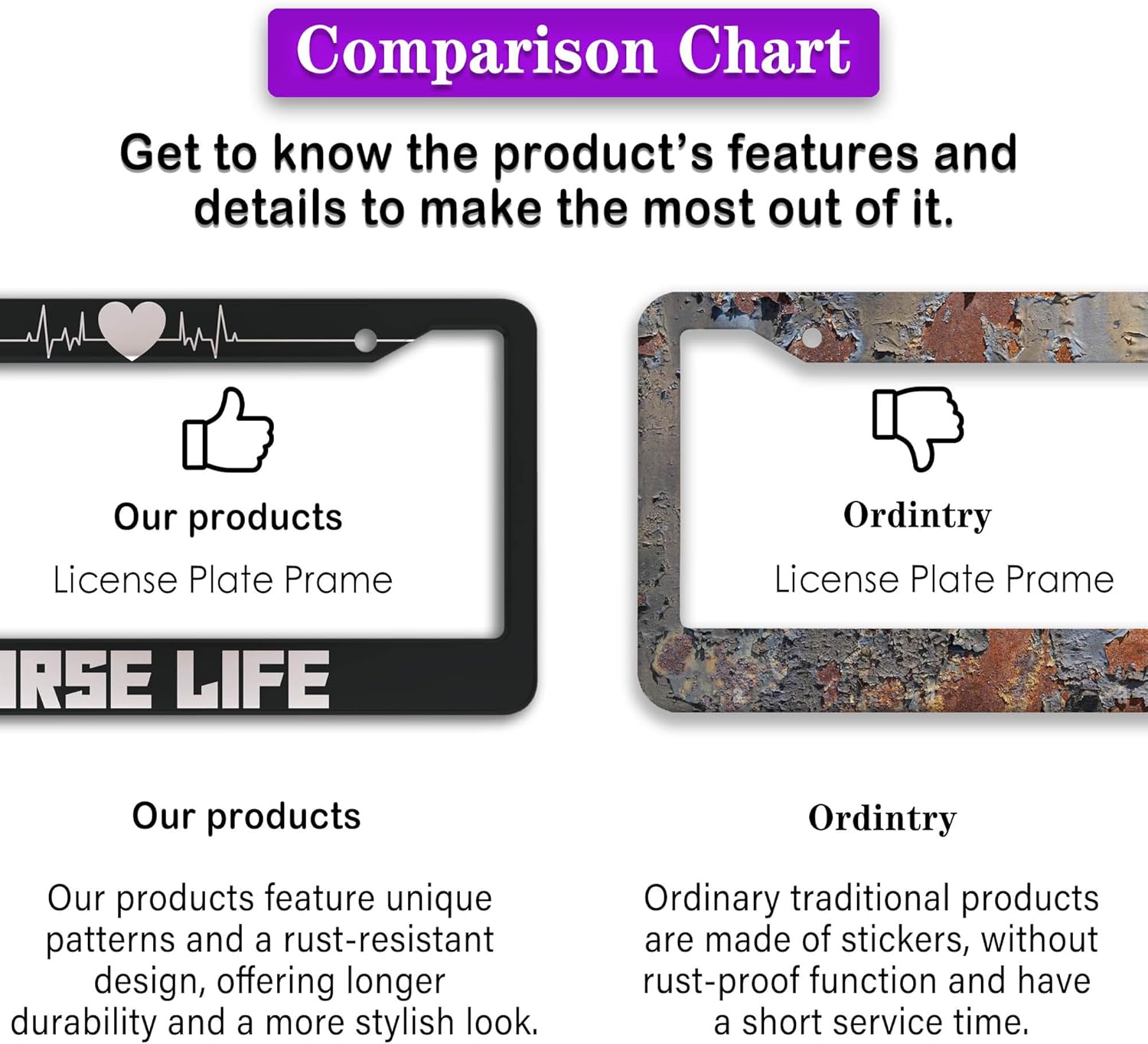 License Plate Protector Black and White License Plate Frames Nurse Life Universal Aluminum Car Accessory 2 Pack with Screw Covers Set