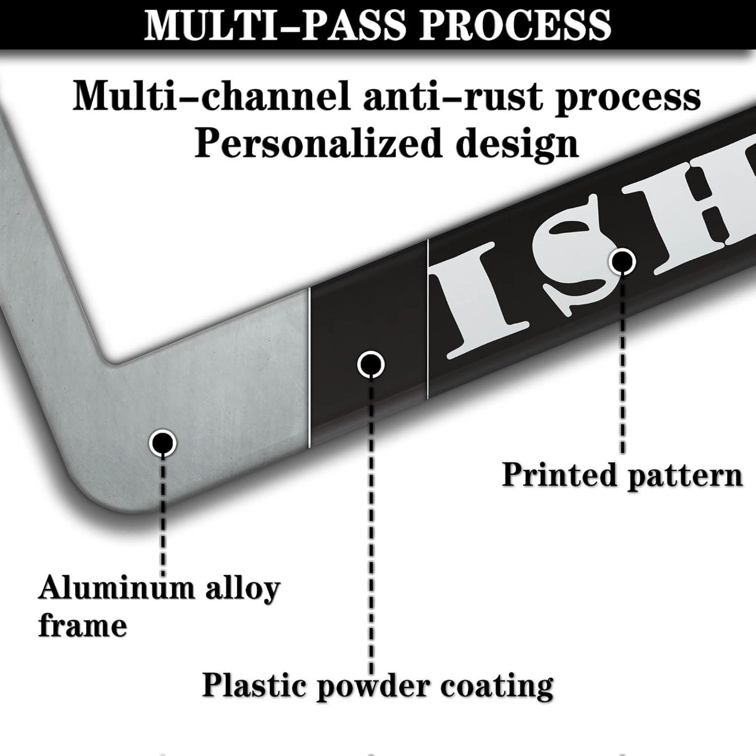 - ALUMINUM FRAME: This License Plate Frame is crafted from high-quality aluminum that is resistant to corrosion, rust, and harsh weather conditions. Its rugged reliability design ensures a long lifespan, making it capable of withstanding car washes and extreme weather, providing you with a reliable and stylish solution for your vehicle.
