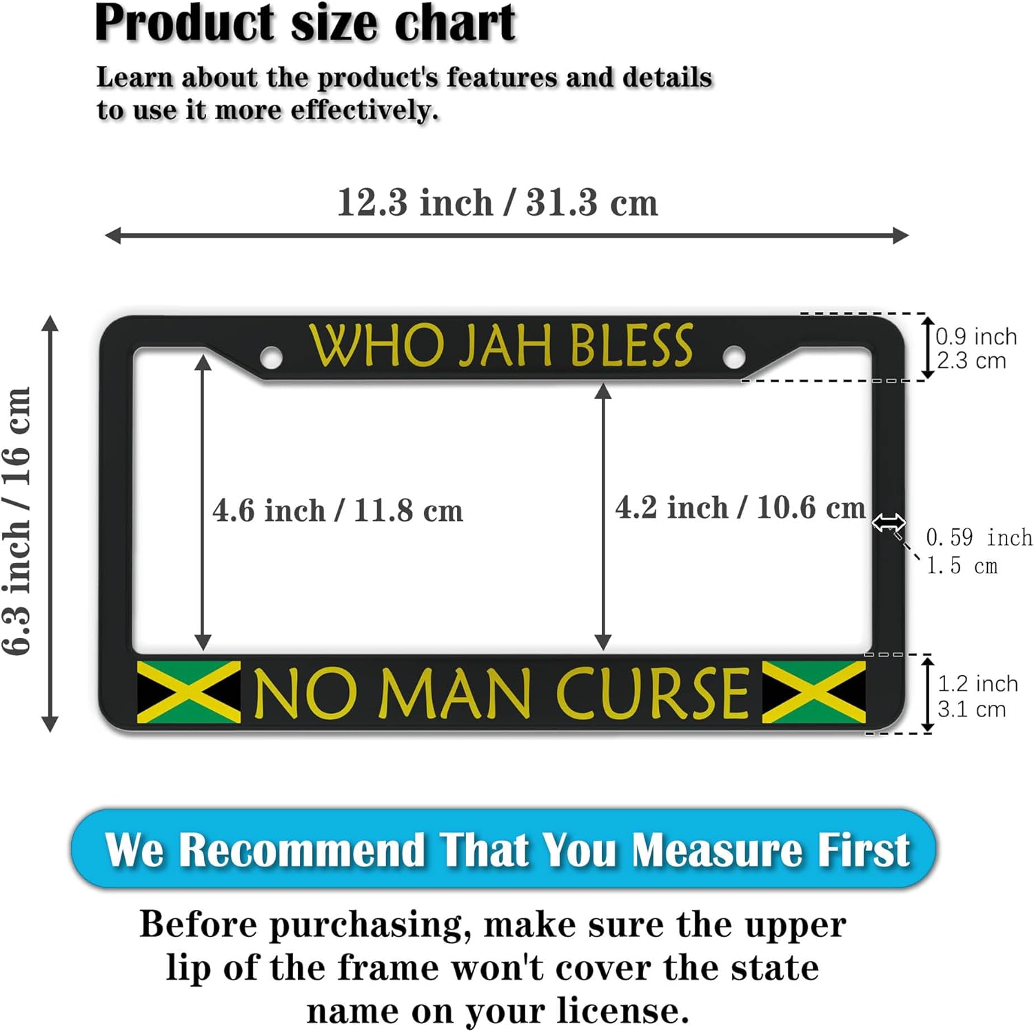 License Plate Holder Black, Yellow, Green License Plate Frames Who Jah Bless No Man Curse Aluminum Metal Car Accessory 2 Pack with Screw Covers Set