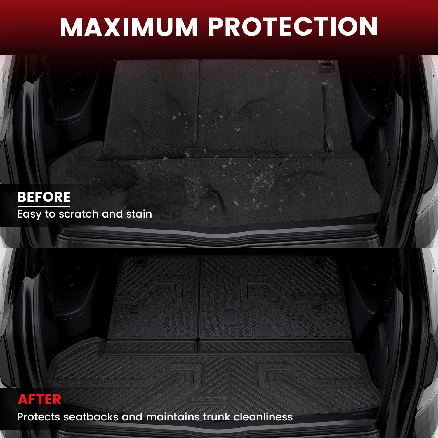 LASFIT Floor Mats&Trunk Mat for Toyota Highlander 2014-2019(Not for Hybrid), All Weather TPE Mats Floor Liner for Highlander LE/Limited/SE/XLE, Black(Not fit 2nd Row Bench Seating).