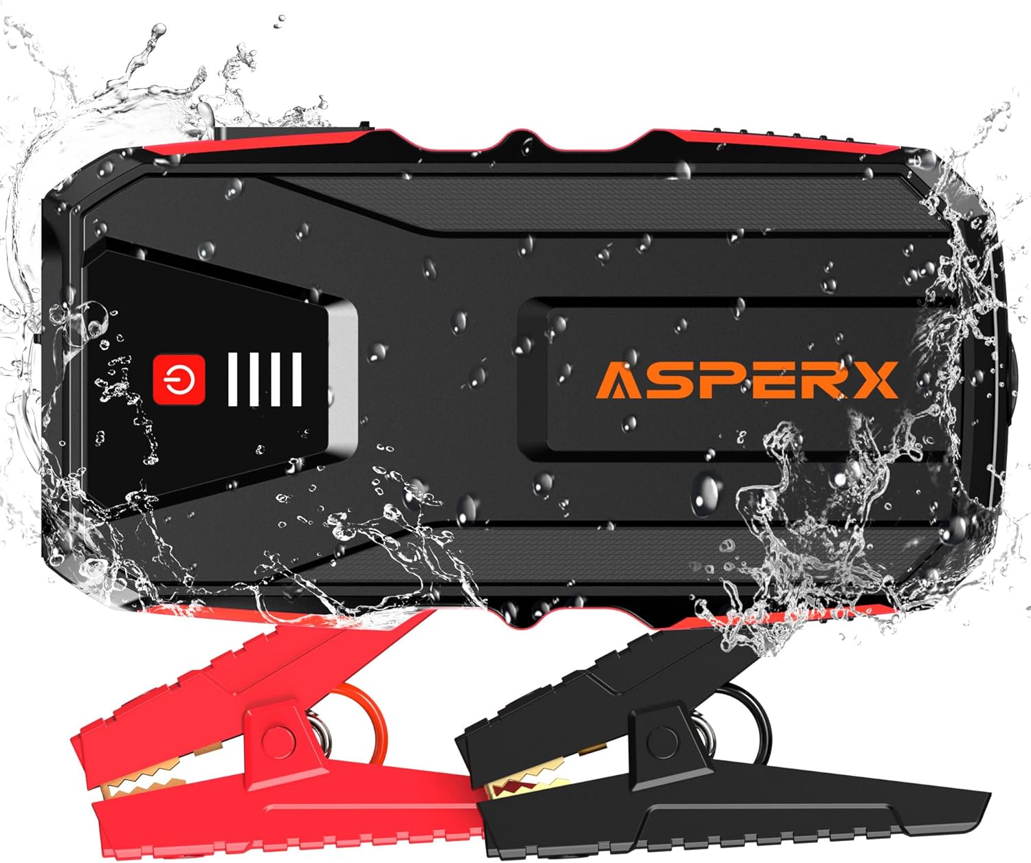 - ă3000A Jump Starteră The ASPERX 3000A car battery jump starter can effortlessly jump-start 10L gas or 8.0L diesel engines in mere seconds. When the battery has sufficient charge, the car jump starter can quickly provide enough cranking amperage to the car battery, ensuring that the vehicle starts up within a short period of time.Even if your battery's voltage dips too low (below 9V), simply pressing the "BOOST" button will get your engine running again. Widely supports various car models.