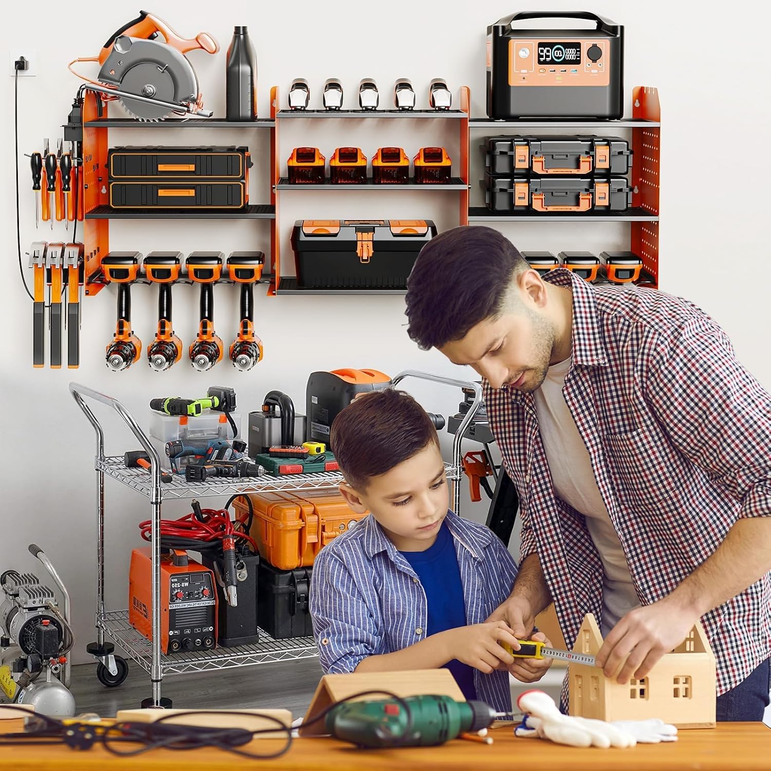 - Power Tool Organizer with Charging Station: Position outlets on either side to keep your tools charged. The American-standard power strip (Output: 125V/12A/1500W) provides device protection, frees up top-shelf space, and clearly displays power status. Includes a 6.56 ft power cord for easy setup