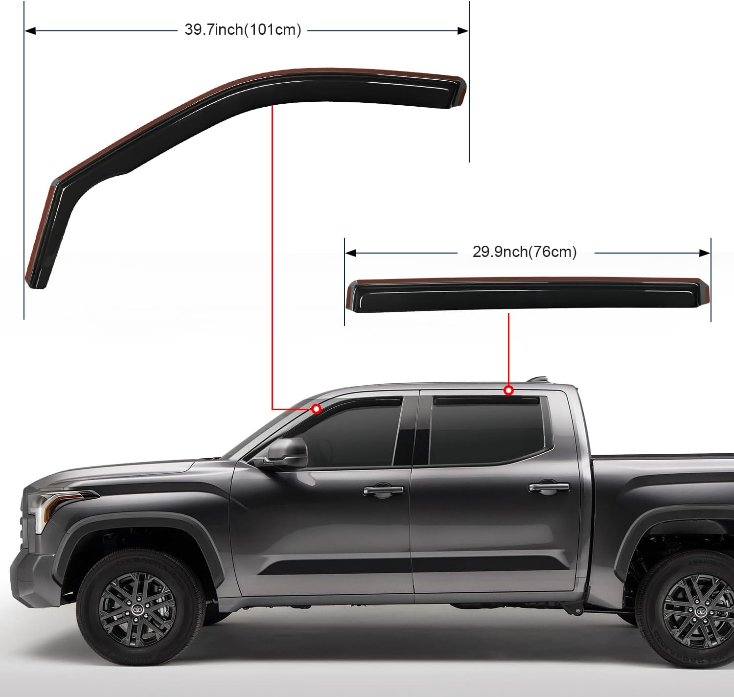 Nilight in Channel Window Deflectors for Toyota Tundra 2022 2023 2024 2025 Crew Max Vent Window Visors, Rain Guards-4PCS