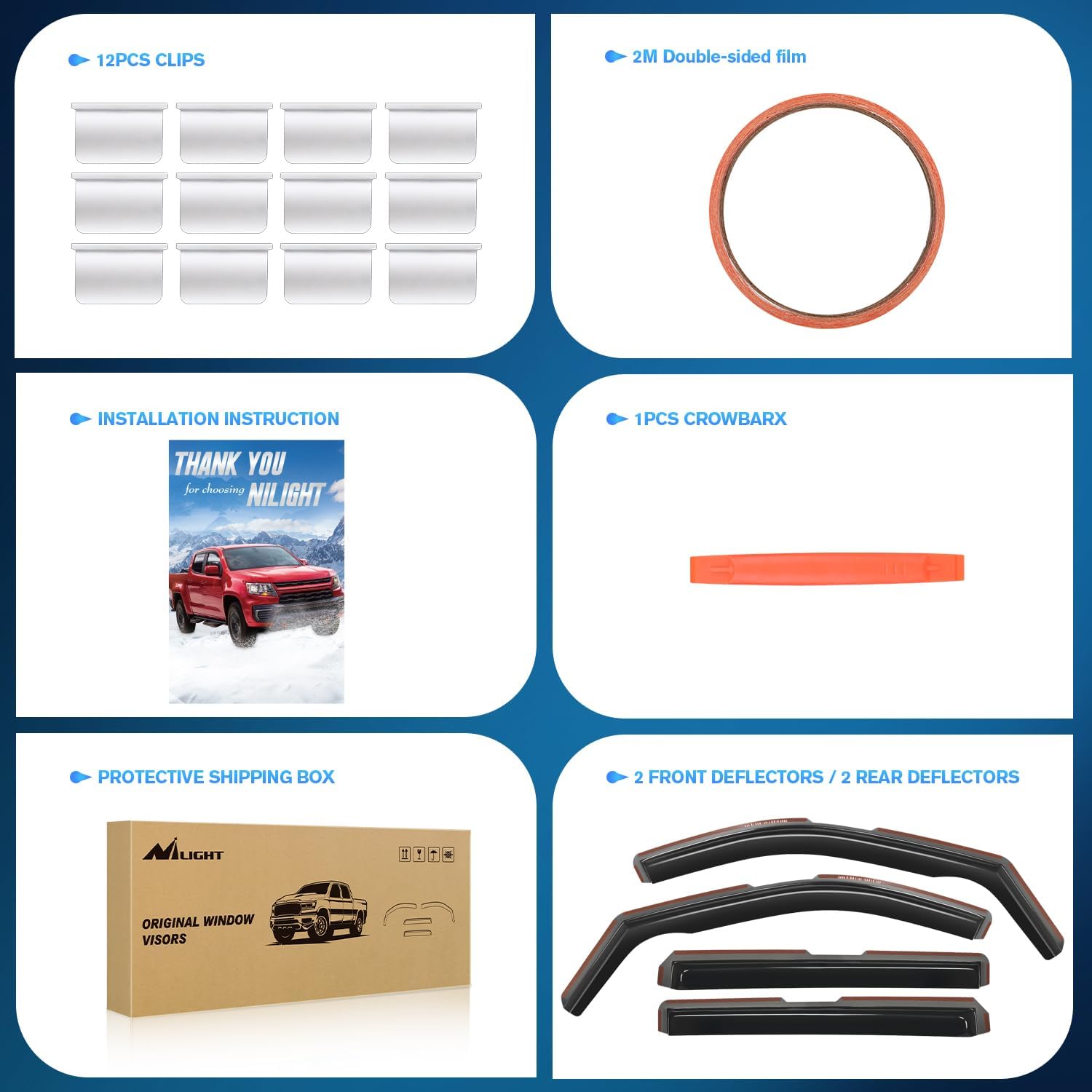 - Advantage:Nilight window deflectors are great for all weather conditions,help improve ventilation inside and outside your car to reduce mirror and window fogging while increasing air circulation。With our side window deflectors, it deflects the rain and noise away from your windows to make your driving more enjoyable