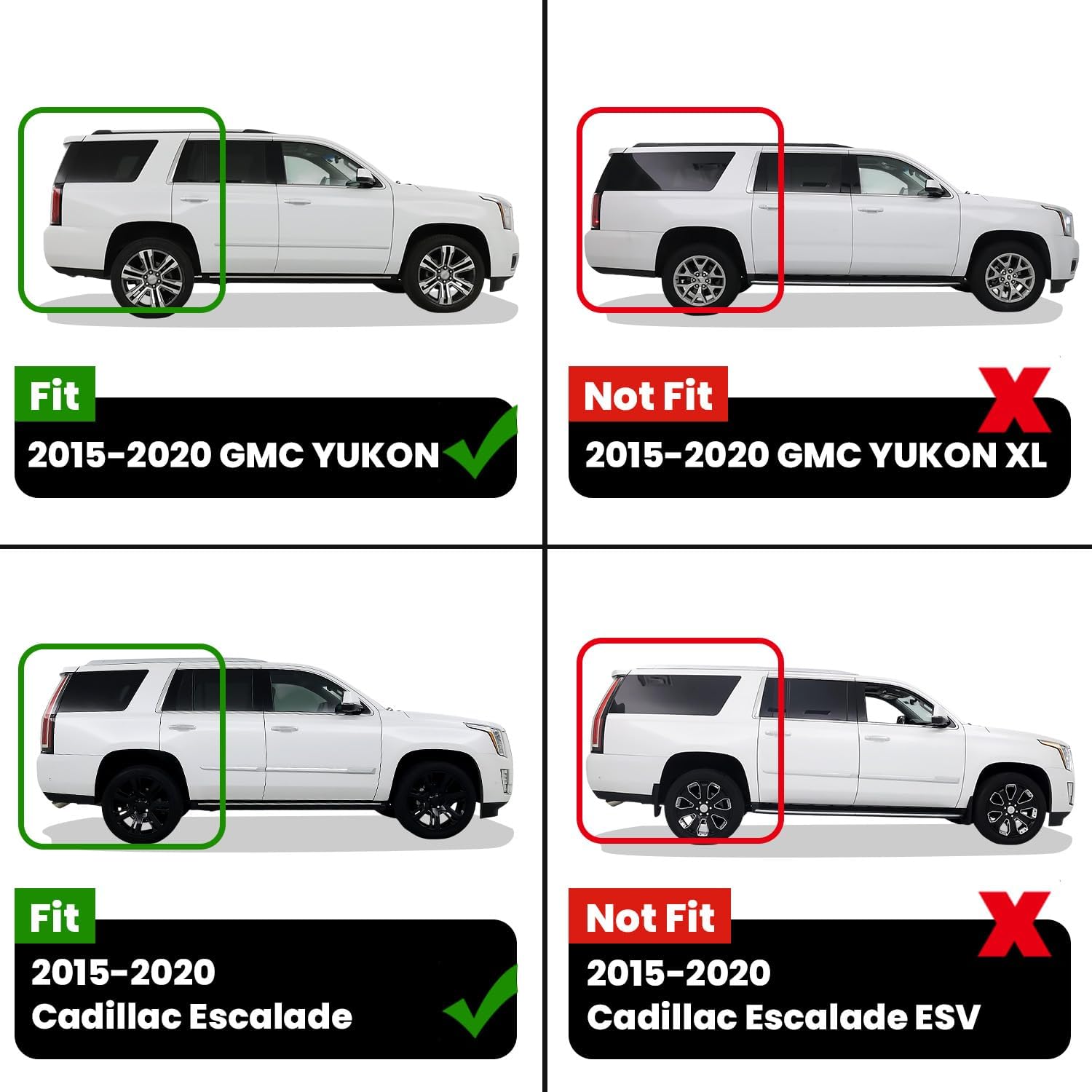 - ăCustom FităFit for Chevrolet Chevy Tahoe (Fit for Tahoe 7 Seats/8 Seats, Not Fit 9 Seats)/GMC Yukon/Cadillac Escalade 2015-2020, state-of-the-art 3D laser scanning technology ensures the custom fit for your 2015 2016 2017 2018 2019 2020 cars. LASFIT floor mats & cargo liner are precisely tailored for your vehicle-specific floor carpets.(could not cover second row's seat aisle for bucket seats)