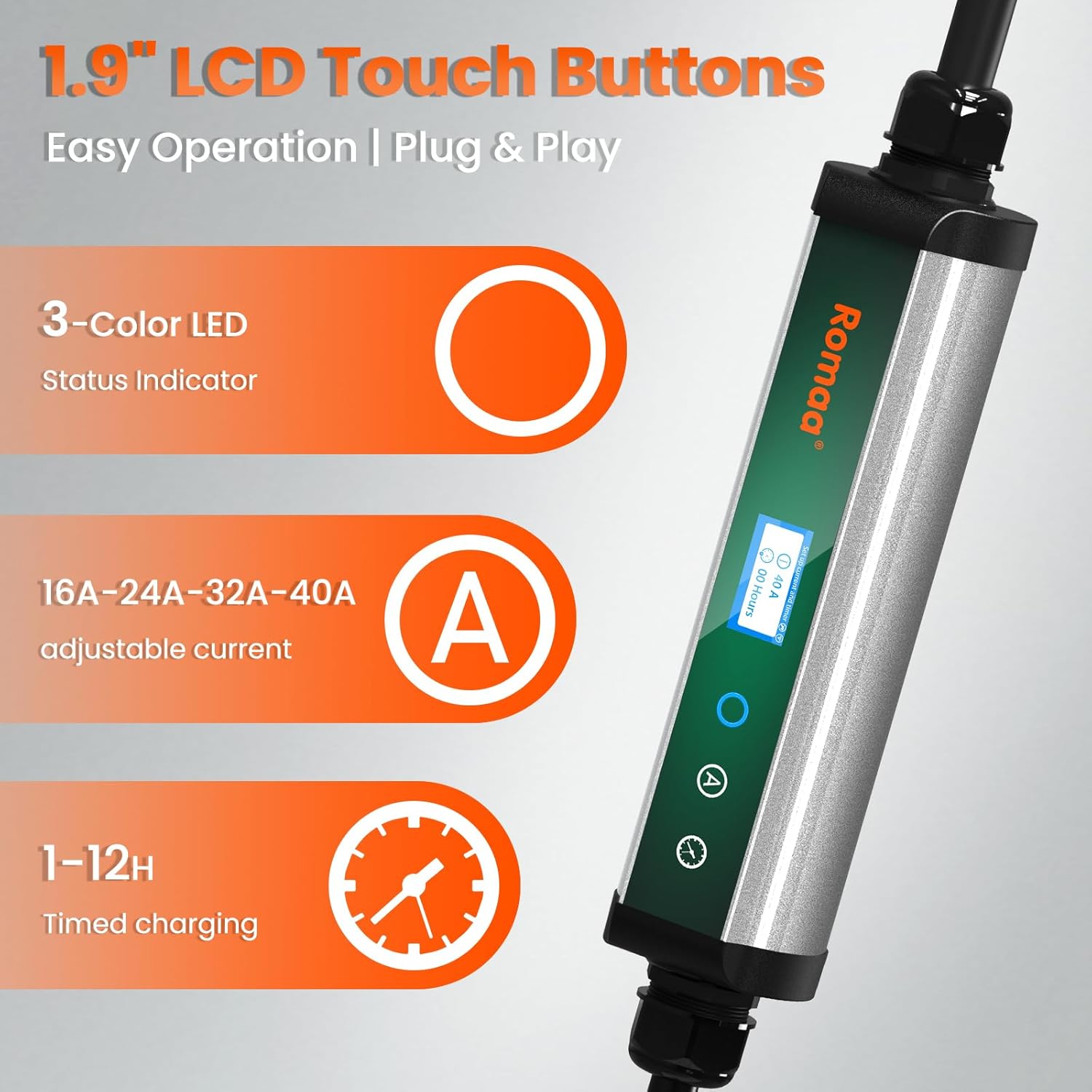 - Modular Deployment | Portable + Wall-Mount Ready: Portable level 2 ev charger includes carrying bag, wall bracket, and cable hook—transform your Romaa charger into a fixed garage station or a mobile backup unit. Built for home users, fleet operators, or EV drivers on the move