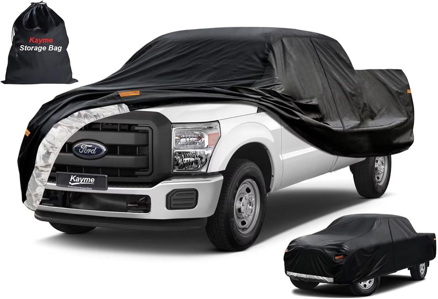 - ăAll Weather ProtectionăWhether it is Waterproof, Sunproof, Heat Insulation, Dust, Sandstorm, Bird Droppings, or Leaves, Whether your car is parked indoors or outdoors, this car cover can provide an All Weather protective barrier for your pickup truck.