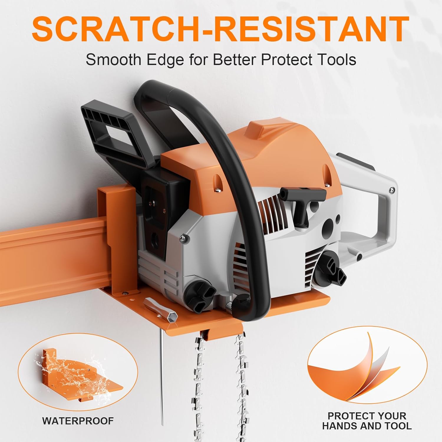 - Enhanced Safety Features: Unlike vertical mounts that can cause oil leakage from chainsaws, our design holds your chainsaw in a more secure position to prevent oil from spilling. Enjoy peace of mind knowing that your tools are stored safely and cleanly