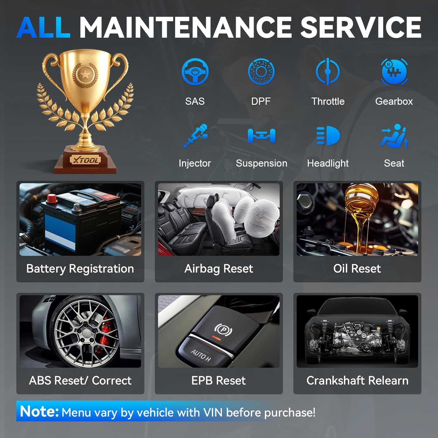 - 【23 for BMW Special Functions: Save 150+/hr Maintence Budget】The XTOOL IP500 car scanner support all special functions for BMW, this diagnostic scanner has quick menu for 23 special functions. Clear "Oil Service Due" alerts with one click after oil changes. Resolve rough idling and throttle lag post-cleaning via Throttle Adaptation. Plus, access exclusive functions like EPB, SAS calibration, ABS bleeding, and Injector Coding – allowing you to perform maintenance at home and avoid costly service fees. Note:Get All Services from "Diagnose>Brand>System Selection>Special Function".Special functions vary by vehicles, please enquire us (xtoolinplusus @ outlook . c-o-m) before purchasing.