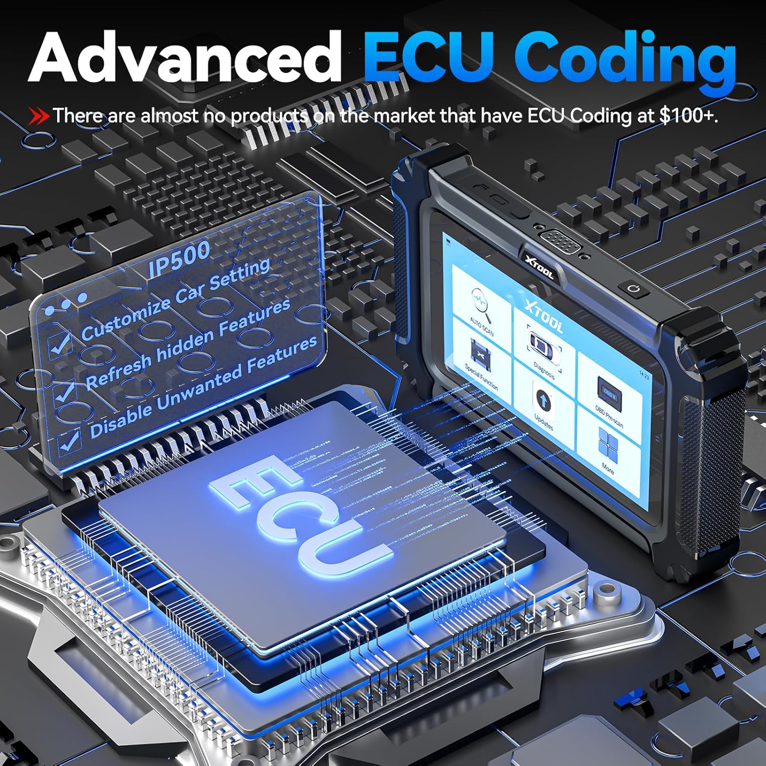 - 【Game Changer: ECU Coding for Customize OE-Setting】 The upgraded IP500 for BMW diagnostic tool now features exclusive ECU Coding capabilities – technology previously found in 500+ high-end scanners. Seamlessly integrate aftermarket upgrades like headlights by matching ECU settings, preventing compatibility headaches. Activate coveted hidden factory features such as auto-folding mirrors on lock/uulock, custom ambient lighting or remembering your auto start/stop preference – tailoring your vehicle to your exact lifestyle. PLEASE NOTE: ECU coding capabilities are model-specific. Message us (xtoolinplusus @ outlook . c-o-m) before purchase to confirm compatibility for your vehicle.