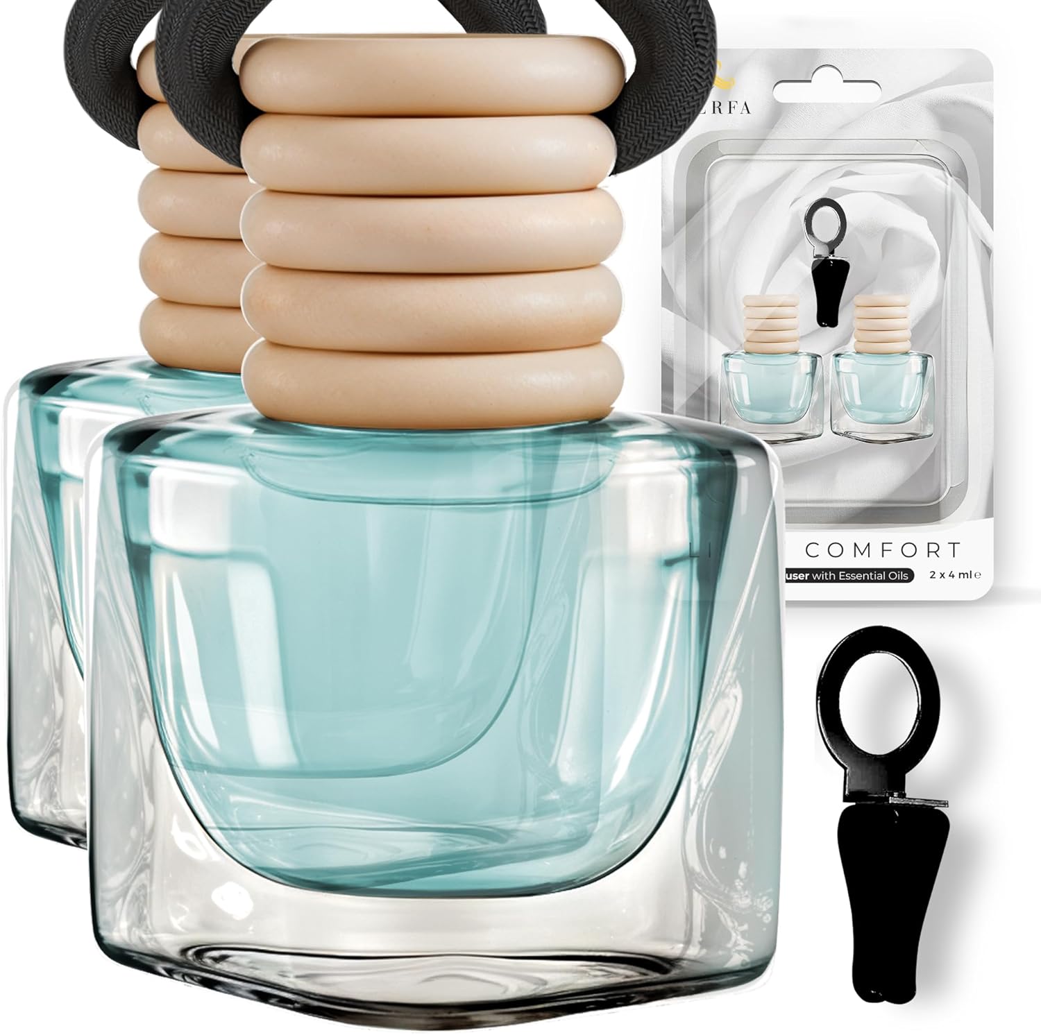 Car Air Fresheners - Linen Comfort Car Air Freshener for Men and Women | Pack of 2 Long Lasting Automotive Air Freshener | Odor Eliminator Car Perfume | Car Air Freshener Vent Clip by Perfa