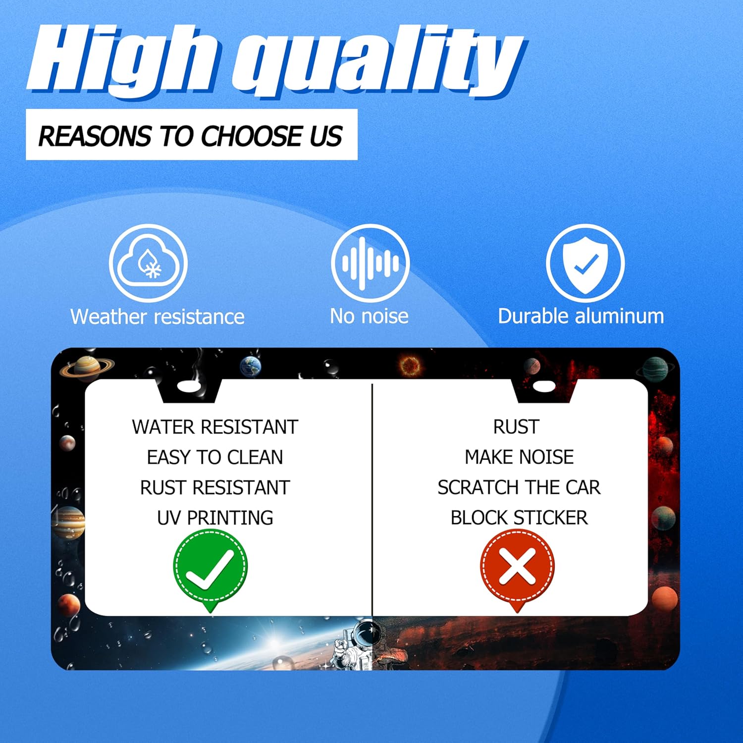 - Design:Use Advanced digital printing Protects license plate frames from Whether it's a car wash, heavy rain or hot weather, it still looks brand new,Let your car still be unique and stylish while driving on the road