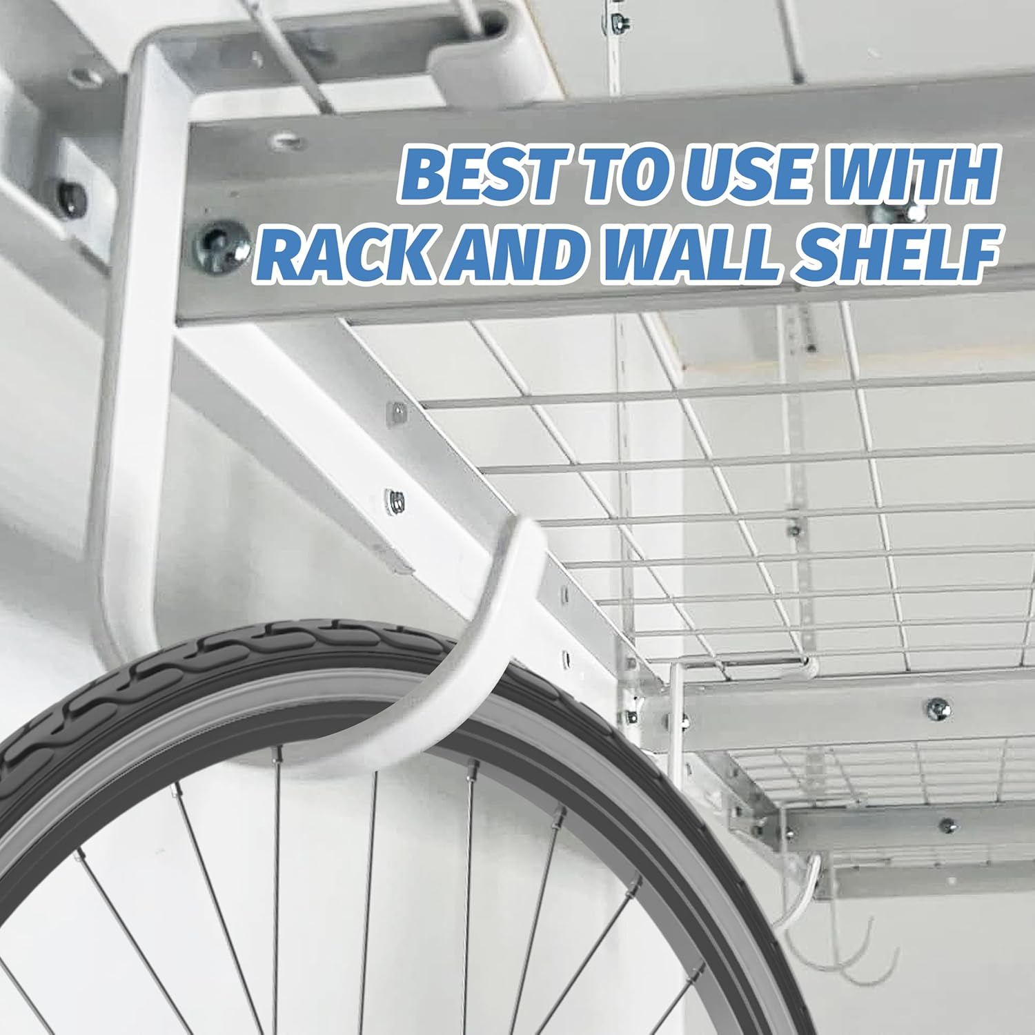 - Multipurpose Flat Hooks:these shelving hooks are suitable for hanging bicycles, getting the bikes up off of the garage floor offer you so much more room, also widely applied for hanging tools, sporting goods, lawn chairs, etc