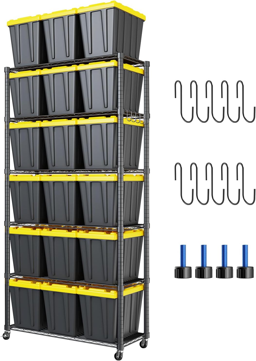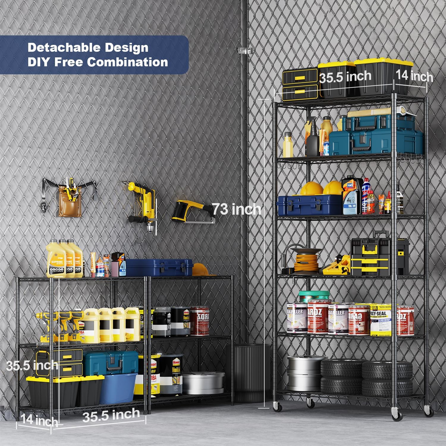 - ăDIY detachable designăDo you want to have a garage shelves that can be personalized? You can unscrew the connector in the middle of the 6-Tier wire rack and turn it into two 3-Tier storage shelves. In addition, The side hook accessories can also be used.