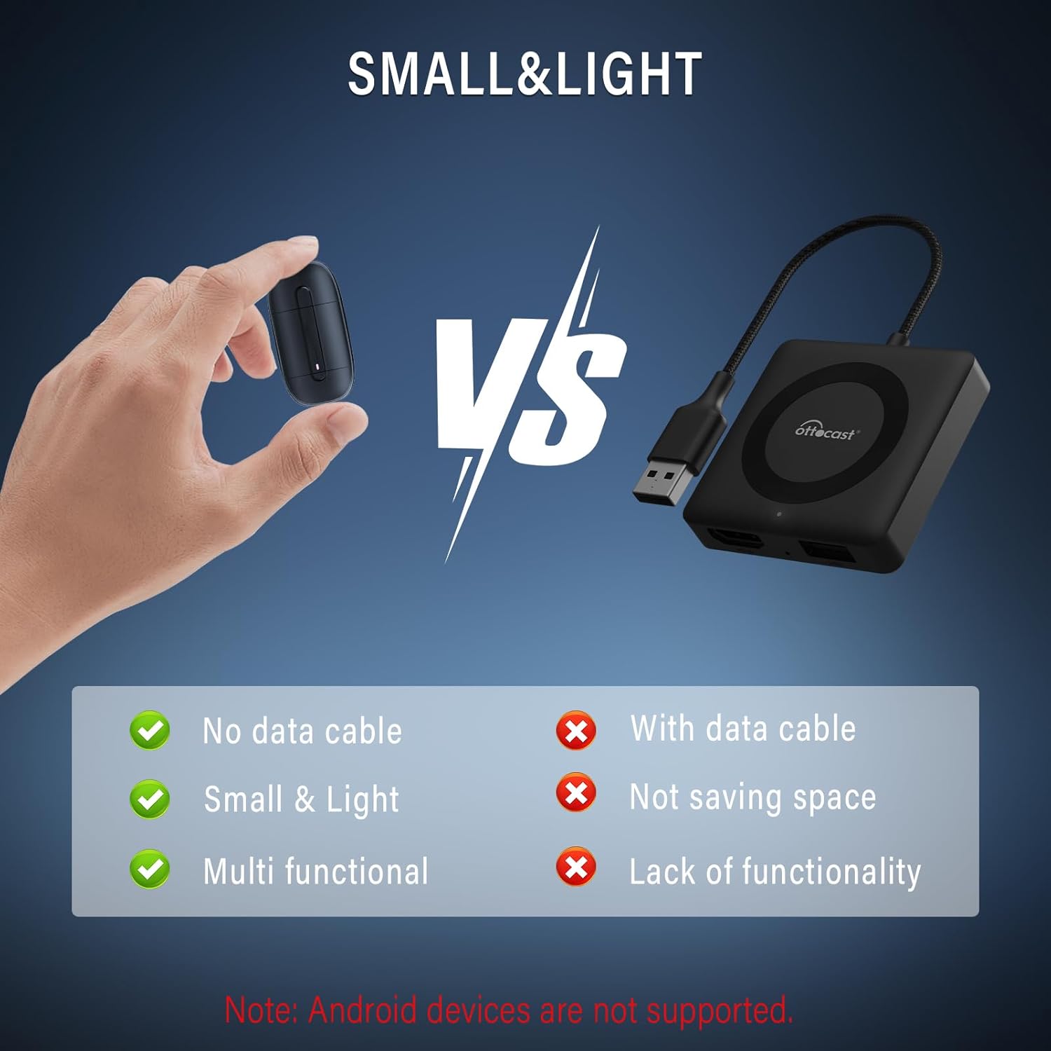 - 【Small and portable】 This wireless carplay adapter is the perfect companion for your vehicle! Its compact size and lightweight design make it easy to carry with you without taking up much space in your car